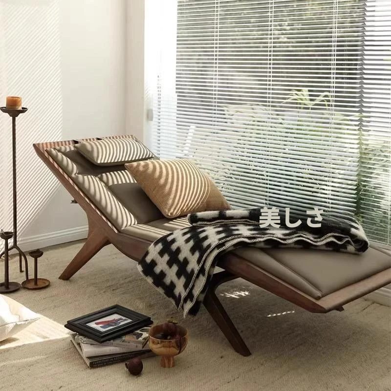新中式禅スタイルのブラックウォールナットとホワイトアッシュのリラックスチェア - 高級感あふれる無垢材のデザイン、ホテルや民宿、オフィスにも最適な美しい貴妃椅子。心地よいひとときをお届けします。