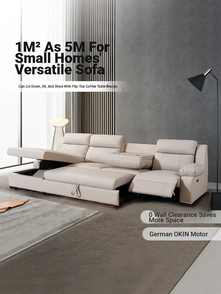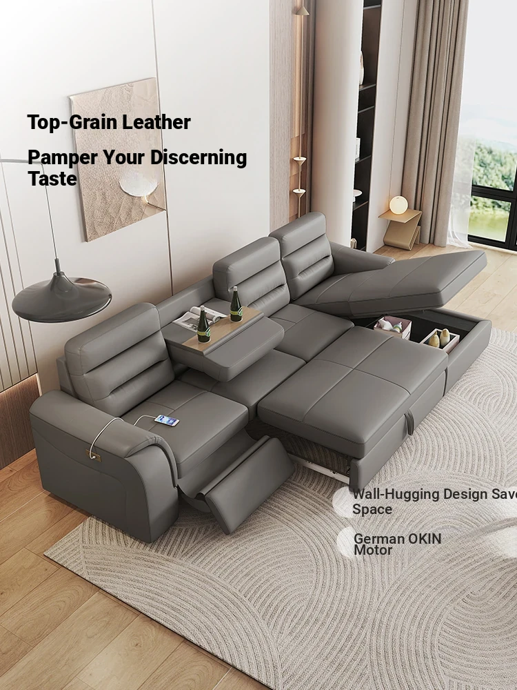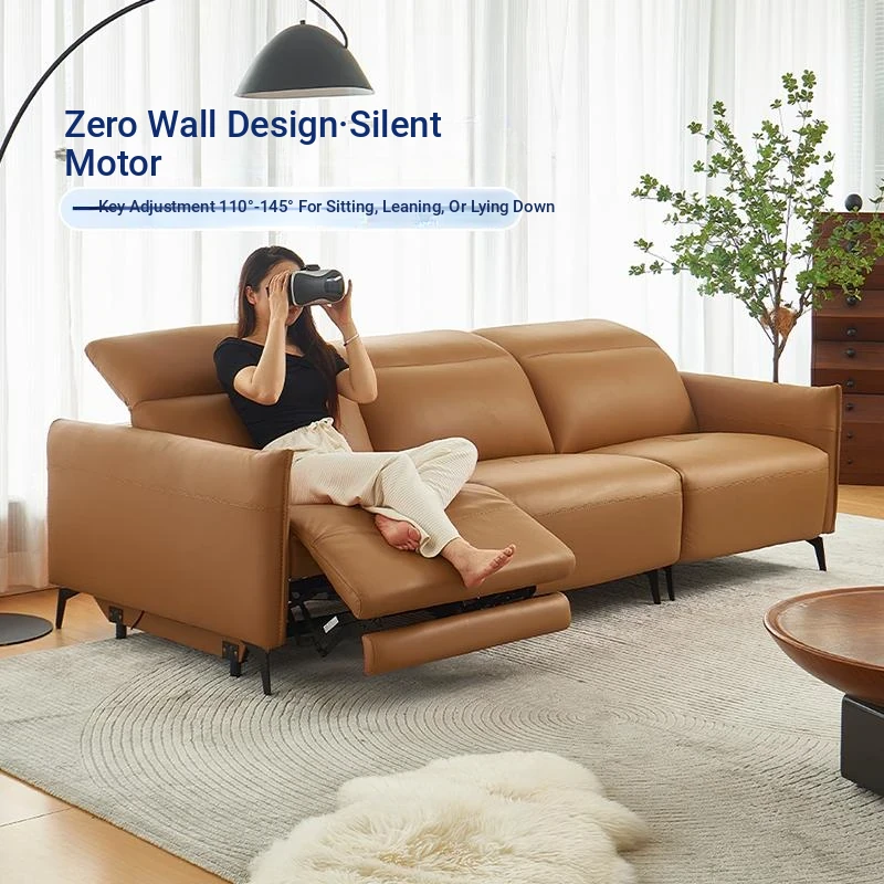 Modern Minimalist Electric Leather Sofa with Zero Wall Clearance - Multi-Functional Space-Saving First-Class Design for Small Apartments, Made with Premium Top-Grain Leather