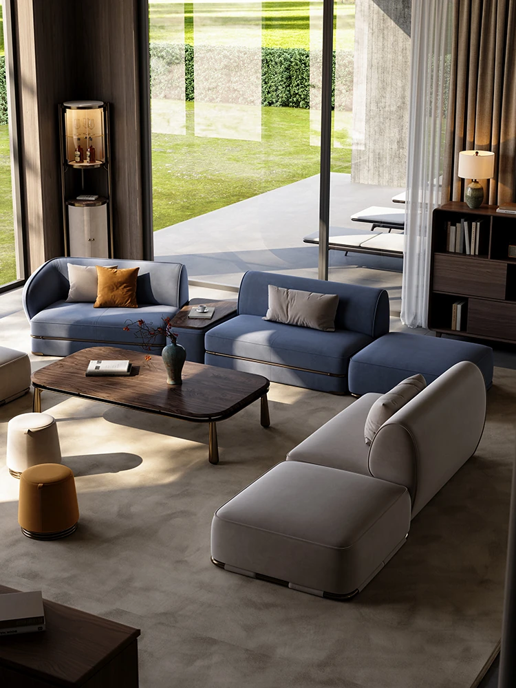 Modern Minimalist Tofu Block Sofa - Stylish Curved Modular Leather Sofa for Villa Living Rooms - Budapest Design