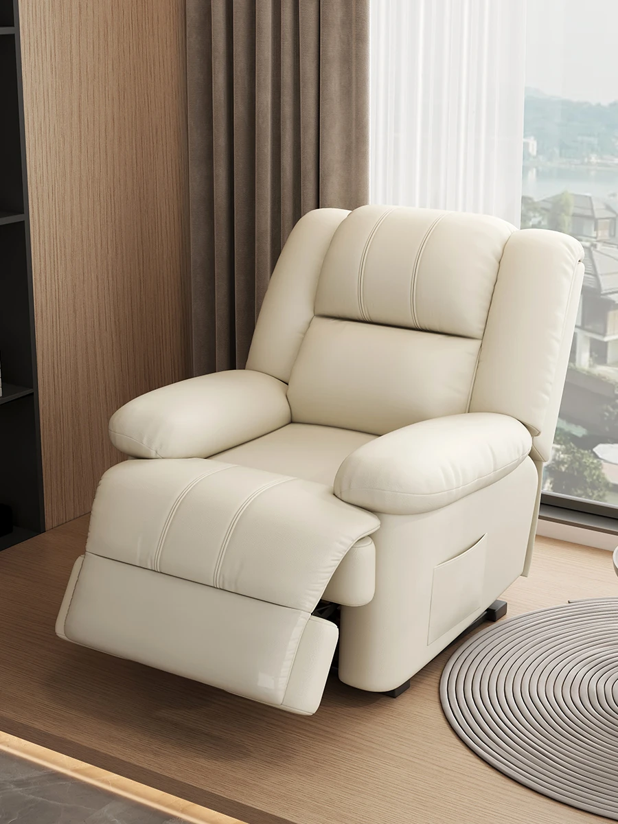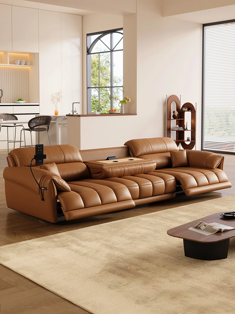 QDKT Italian Minimalist Genuine Leather Multifunctional Electric Sofa - Premium Top Grain Leather Recliner for Living Room, Perfect for Relaxation and Style