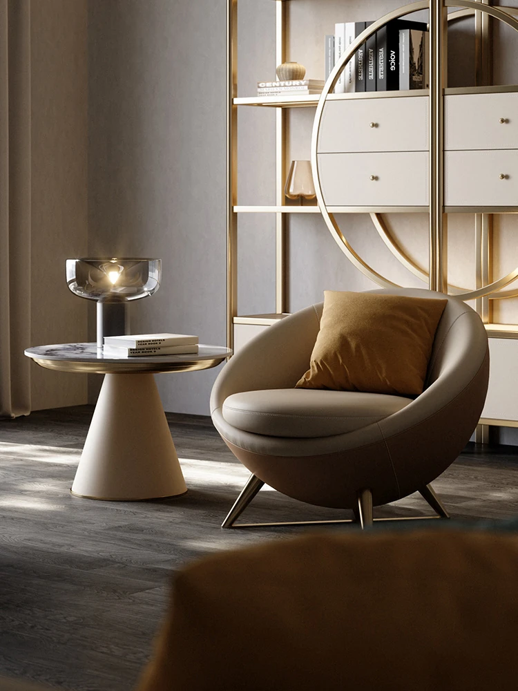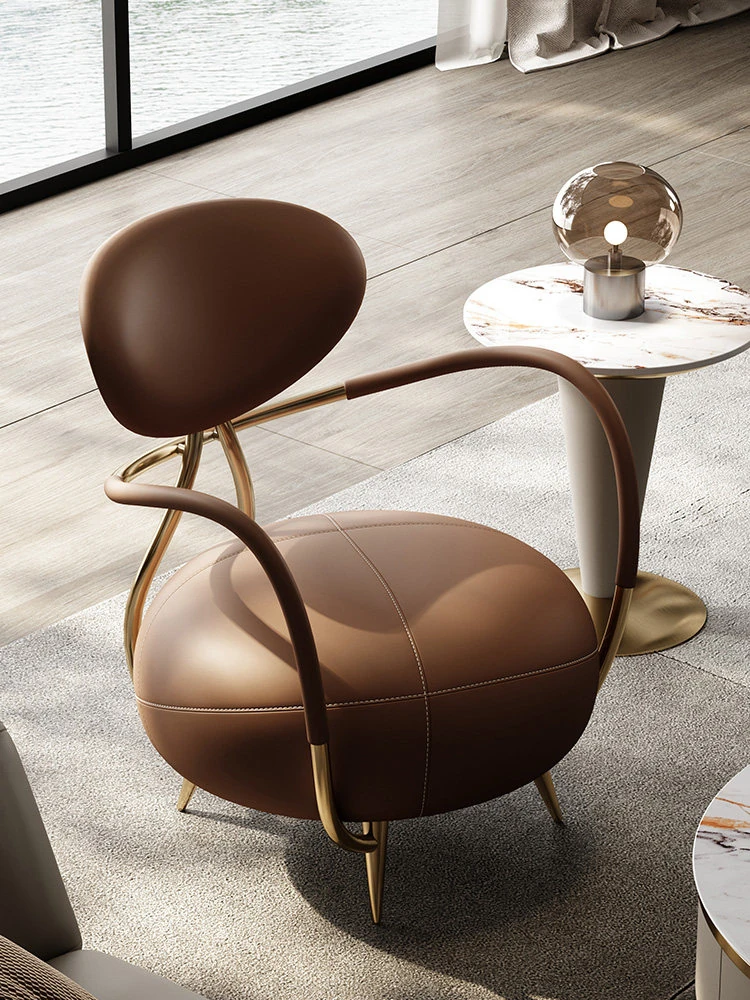 Luxury Italian Minimalist Genuine Leather Lounge Chair - Creative Round Single Sofa for Small Living Spaces, Perfect for Chic and Cozy Interiors
