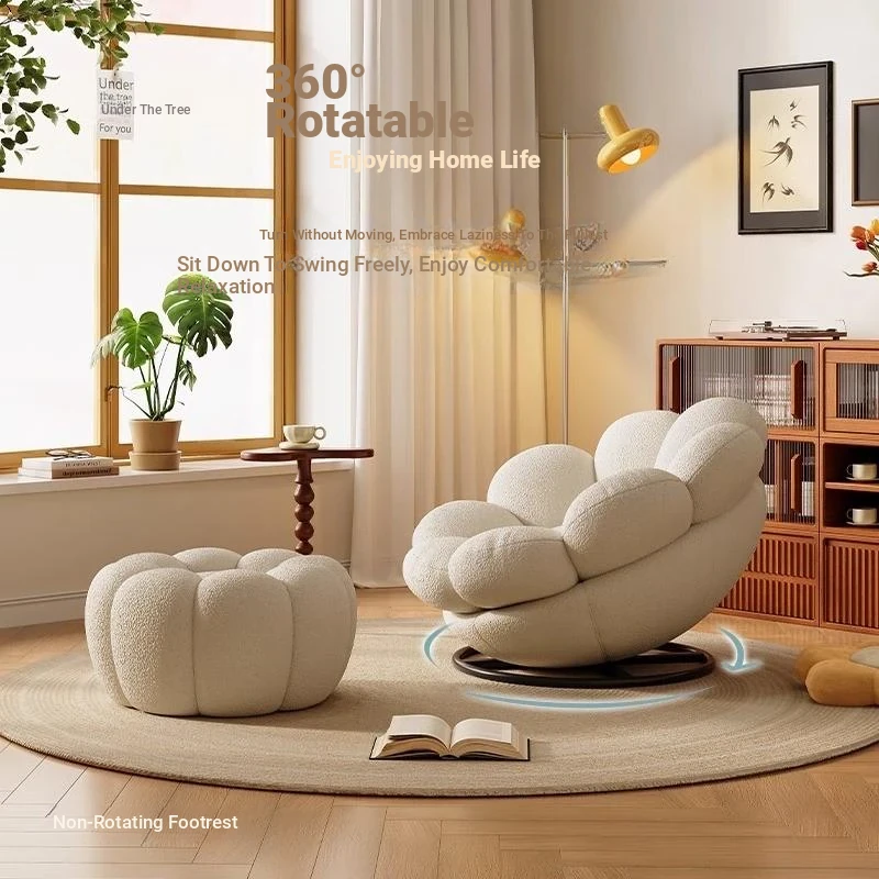 Lazy Single Rotating Sofa Chair - Petal-Shaped Accent Chair for Living Room, Balcony & Bedroom. Trendy Floral Lounge Chair with Nordic Minimalist Luxury Style. Perfect for Relaxation!