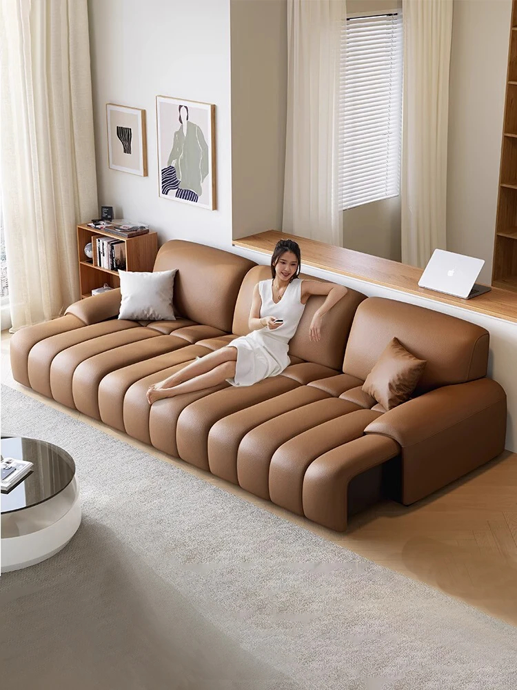 2025 New Electric Lawrence Sofa - Versatile Wall-Free Expandable Design, Made with Premium Top-Grain Yellow Cowhide, Quality Craftsmanship from Foshan - Perfect for Modern Living Spaces!