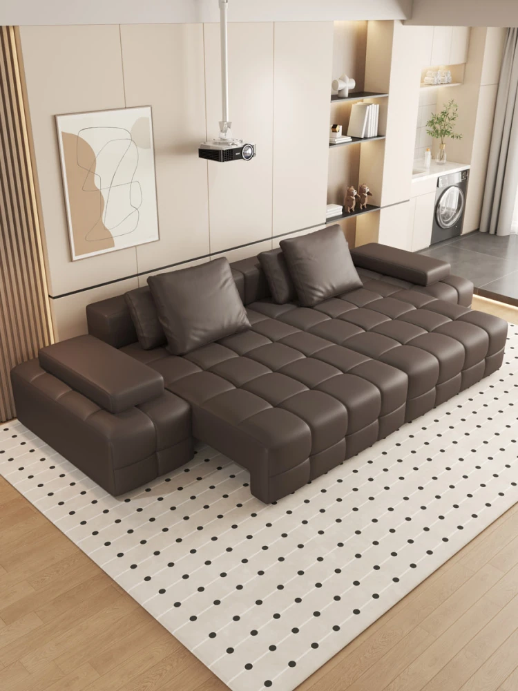 Modern Italian Minimalist Electric Leather Sofa Bed for Small Living Spaces - Smart Expandable and Space-Saving Design, Perfect for Contemporary Homes