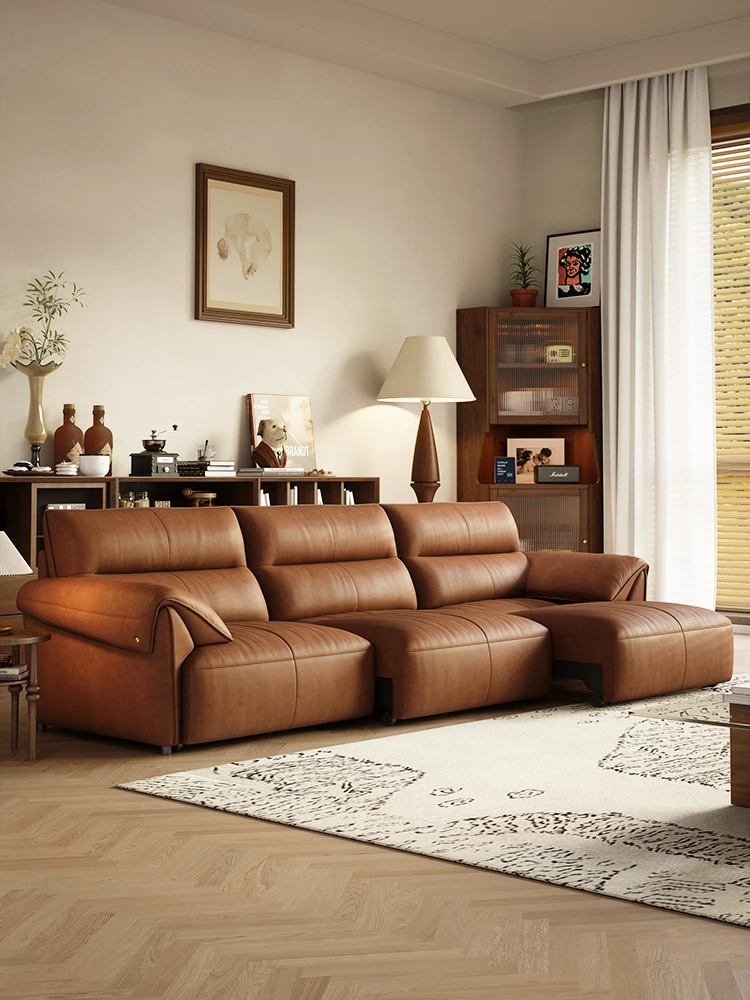 Retro Modern Electric Leather Sofa Bed – Versatile, Wall-Free, Adjustable Size for Any Home Layout – Perfect for Small Spaces and Stylish Living!