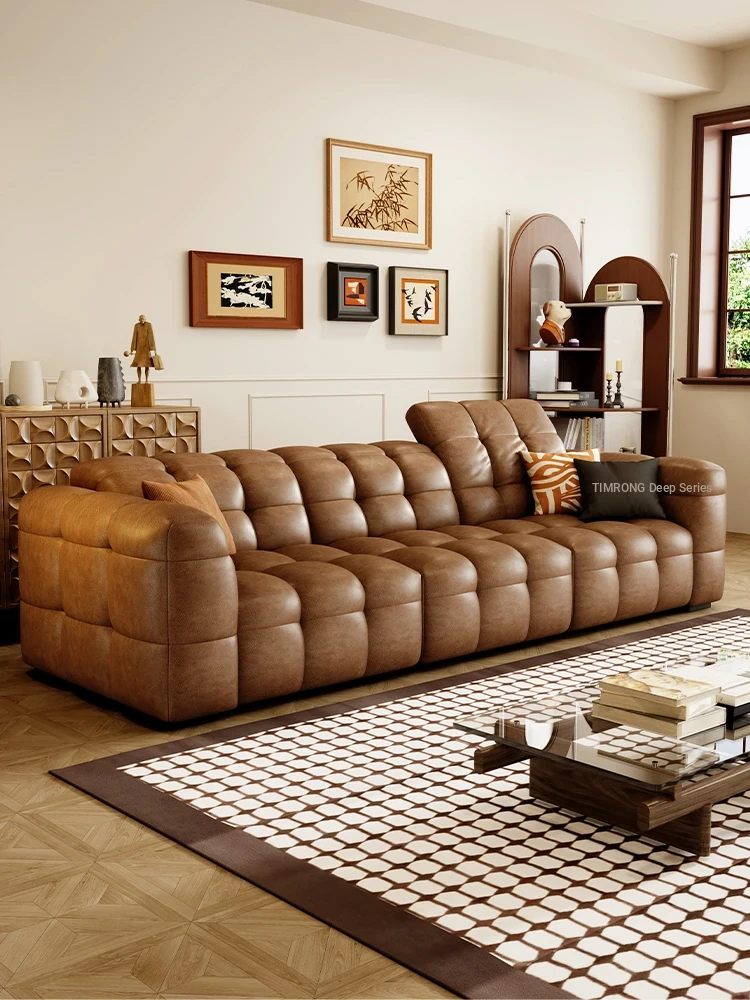 Vintage Leather Electric Sofa Bed - Adjustable Backrest, Space-Saving Design, Perfect for Small Homes, Featuring Comfortable Cotton Candy Upholstery, Ideal for Any Living Space!