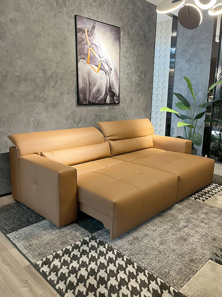 2024 New High-End Smart Electric Leather Multifunctional Sofa Bed for Small Apartments - Foldable and Expandable, Perfect for Living Rooms and Dual Use