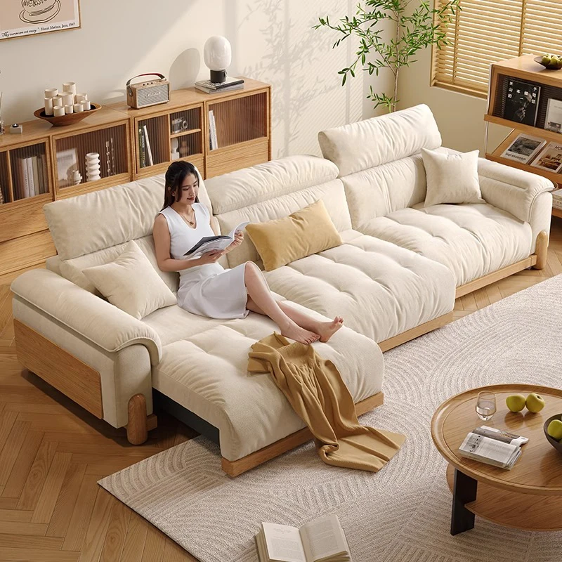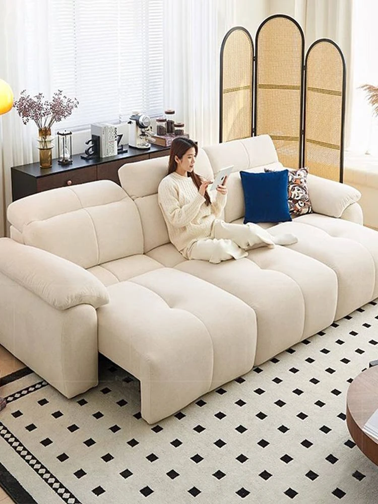 Compact Electric Sofa Bed for Living Room - Stylish Japanese Cream Design, Multi-Functional, Retractable, and Made with Quality Solid Wood and Fabric for Small Spaces. Perfect for Modern Living!