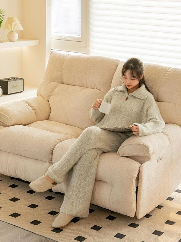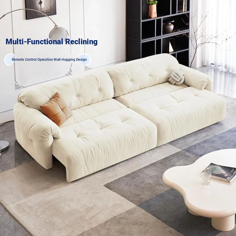 Trendy Wall-Hugging Electric Multi-Functional Sofa with Adjustable Headrest - Cloud-Soft Cat Scratch Resistant Fabric in Creamy Style