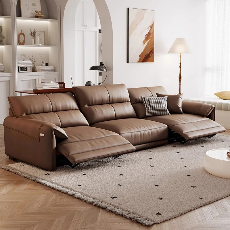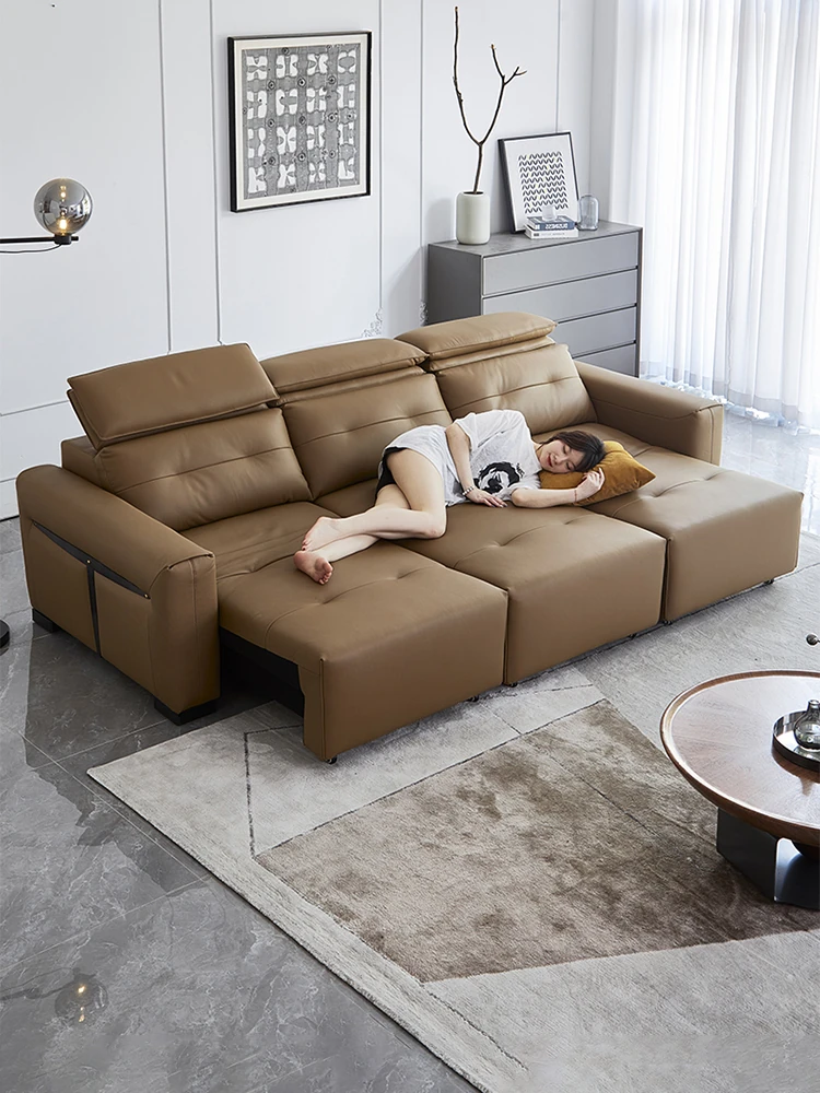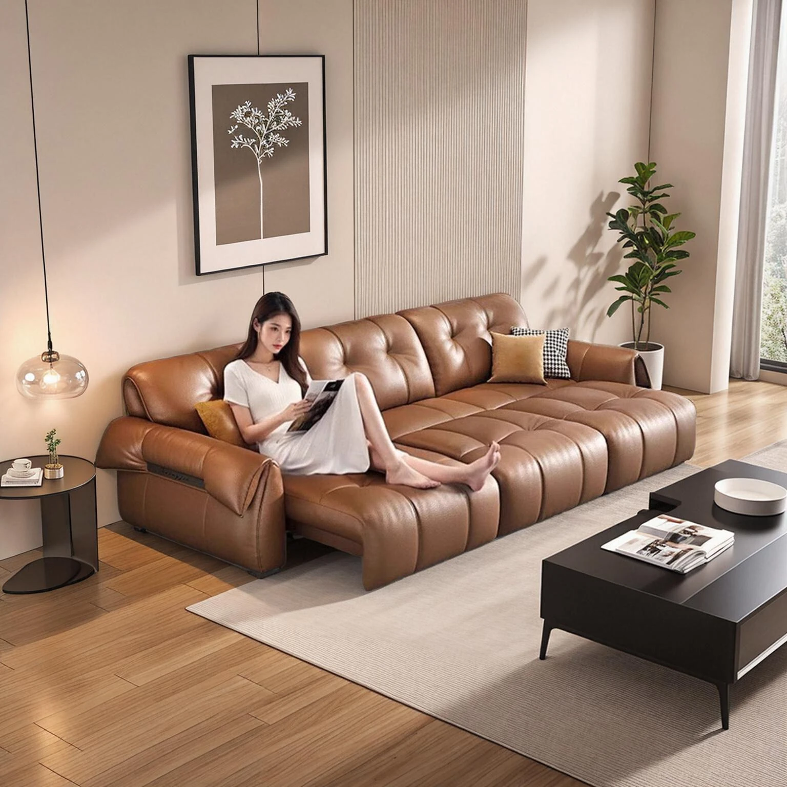QDKT Multi-Functional Electric Leather Sofa - Adjustable Genuine Cowhide Sleeper Sofa for Living Room & Home Theater, Expanding Design for Ultimate Comfort and Style