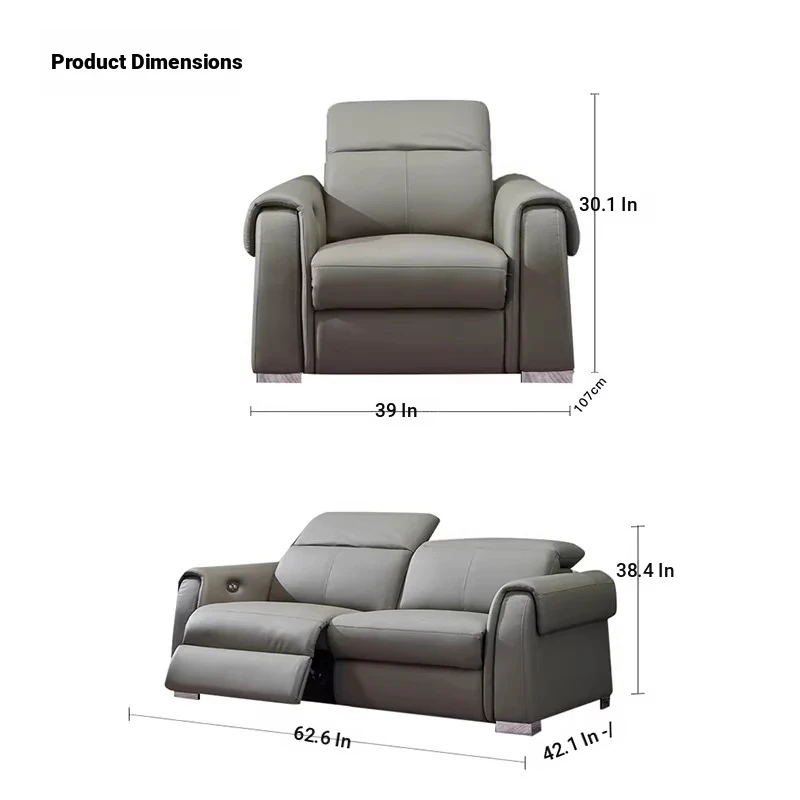 Authentic Italian Leather Sofa - Modern Minimalist Design, Perfect for Small Living Rooms, Featuring Electric Recline Functionality, Made with Top-Grain Cowhide.