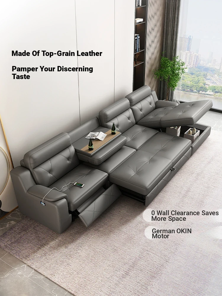 Electric Multifunctional Chaise Lounge Sofa with Storage - Foldable Design for Small Living Rooms, Made of Premium Top-Grain Leather, Perfect for Style and Comfort!