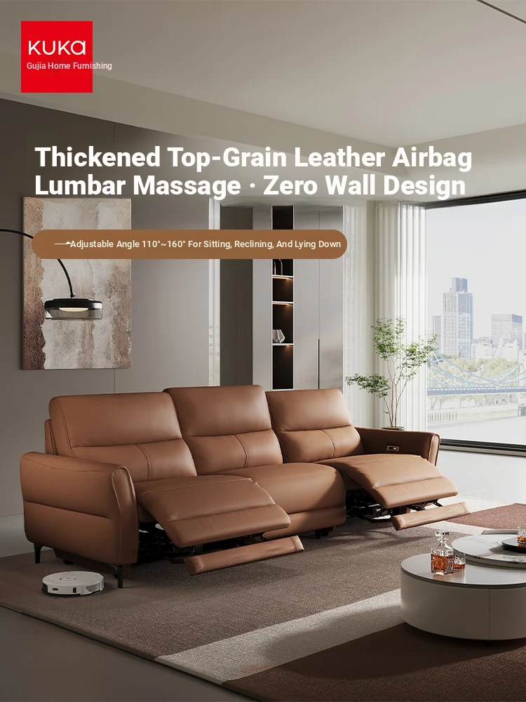 2025 New Arrival: Gujia Italian Style Electric Leather Sofa with Lumbar Massage - Made from Top-Grade Cowhide, Model PTAM013. Experience Ultimate Comfort and Luxury!