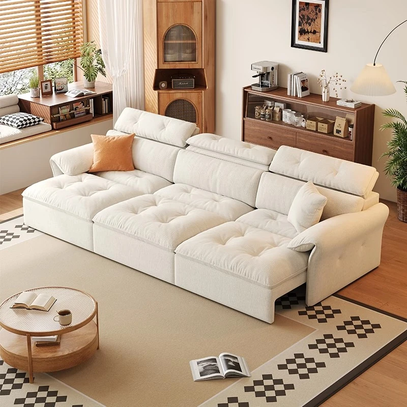 Chic Chenille Electric Sofa Bed for Small Spaces - Japanese Cream Style, New Multifunctional Retractable Fabric Sofa with Sleek Design