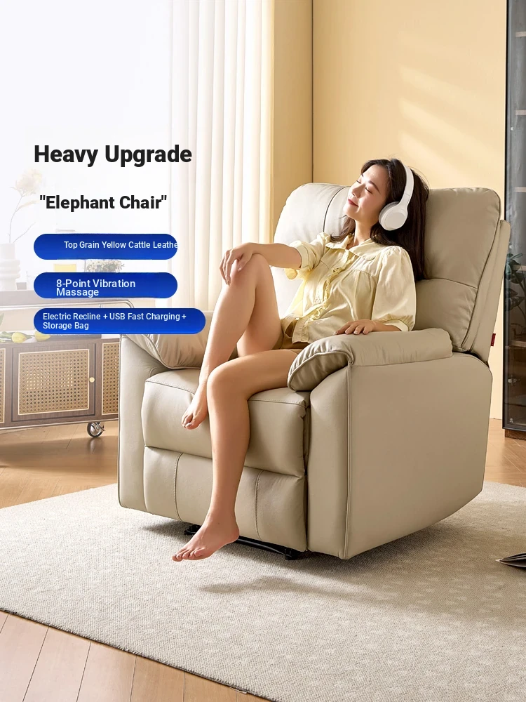 "Free Shipping to Hong Kong - Multi-Functional Electric Single Sofa with Real Leather & Massage Features - Lazy Recliner Chair for Your Living Room"