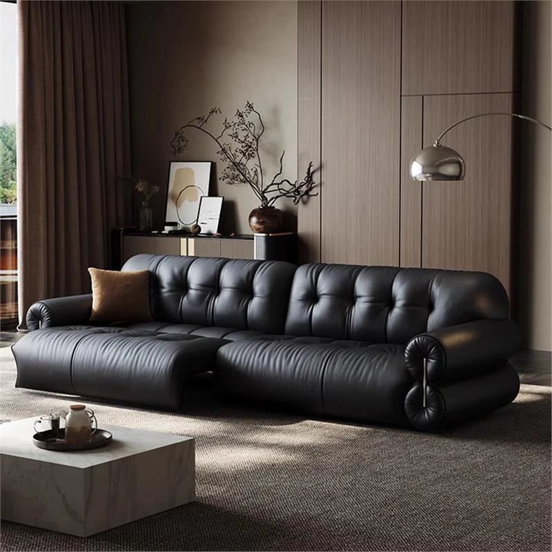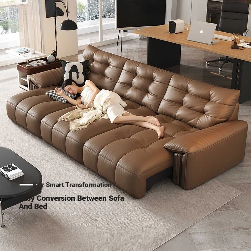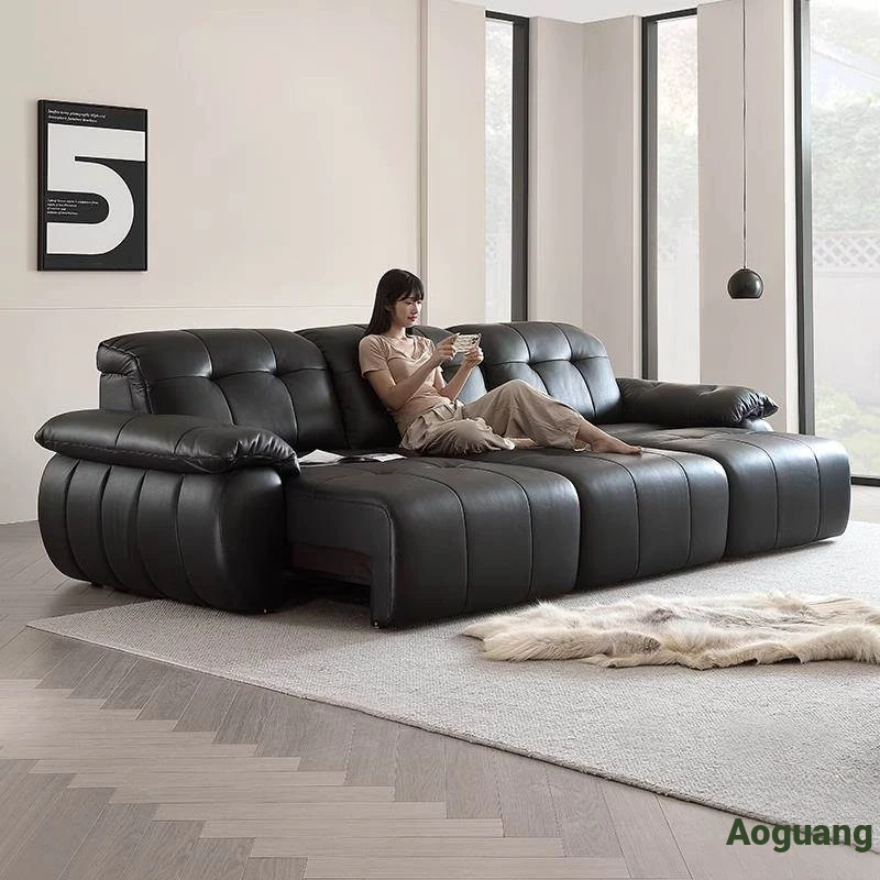 Electric Multifunctional Genuine Leather Sofa Bed - Vintage Luxury Expandable First-Class Black Sugar Cloud Sofa for Living Room Use