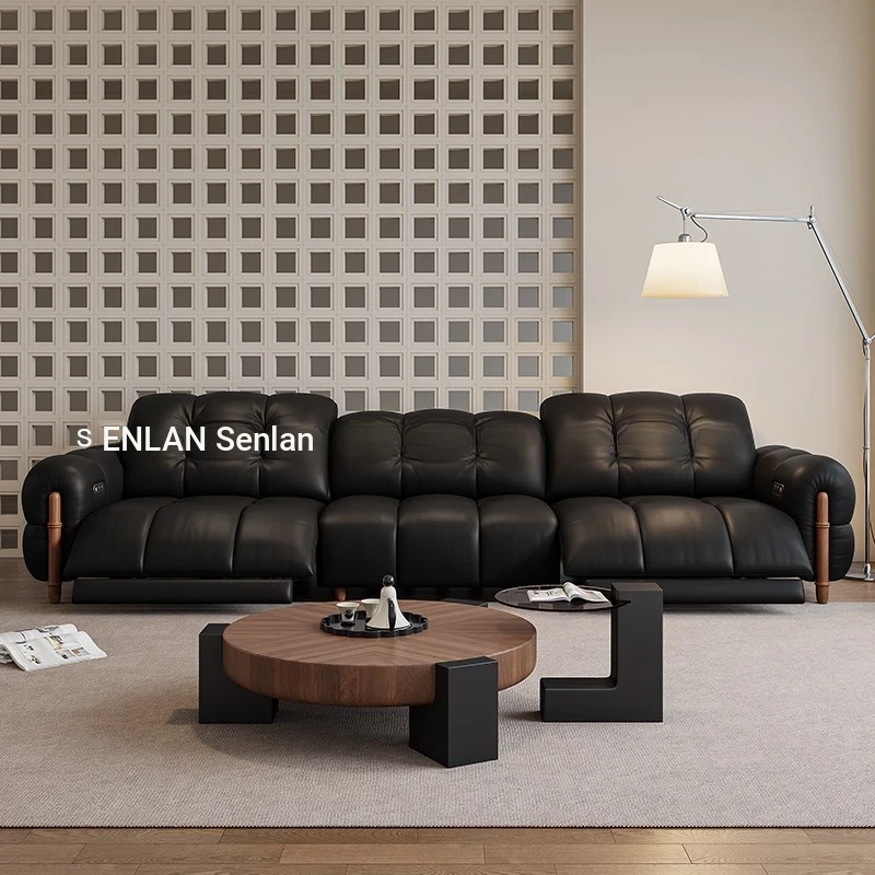 Genuine Leather Sofa for Villa Living Room Home Theater - Premium First Layer Cowhide, Electric Function, Space Capsule Design, Ideal for Couples and Singles