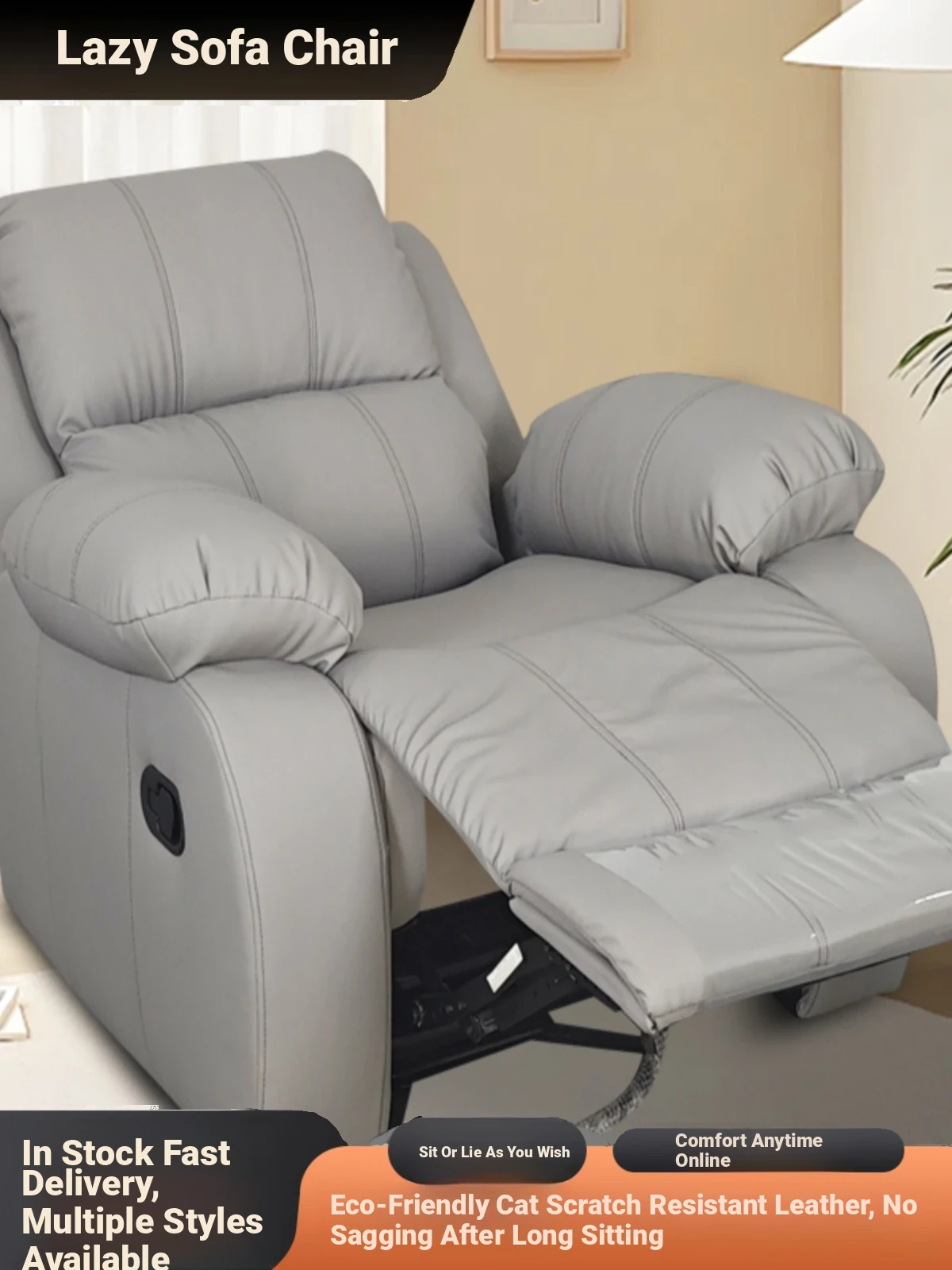 【Free Shipping in Hong Kong】Versatile Lazy Sofa Chair - Easily Reclines for Relaxation or Sleep, Perfect for Balcony or Living Room Use!