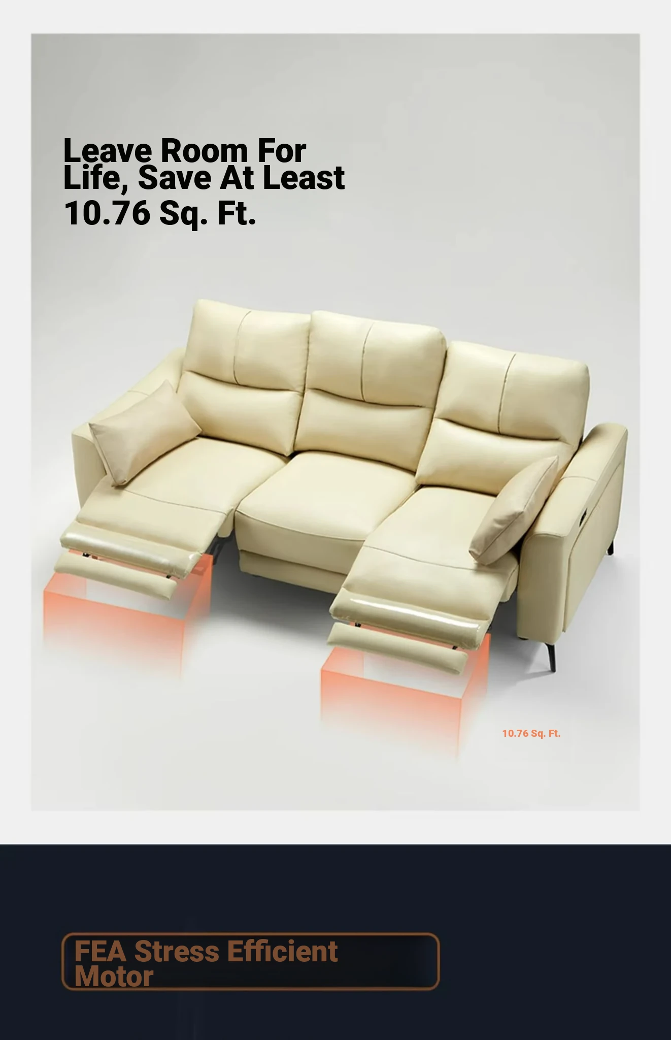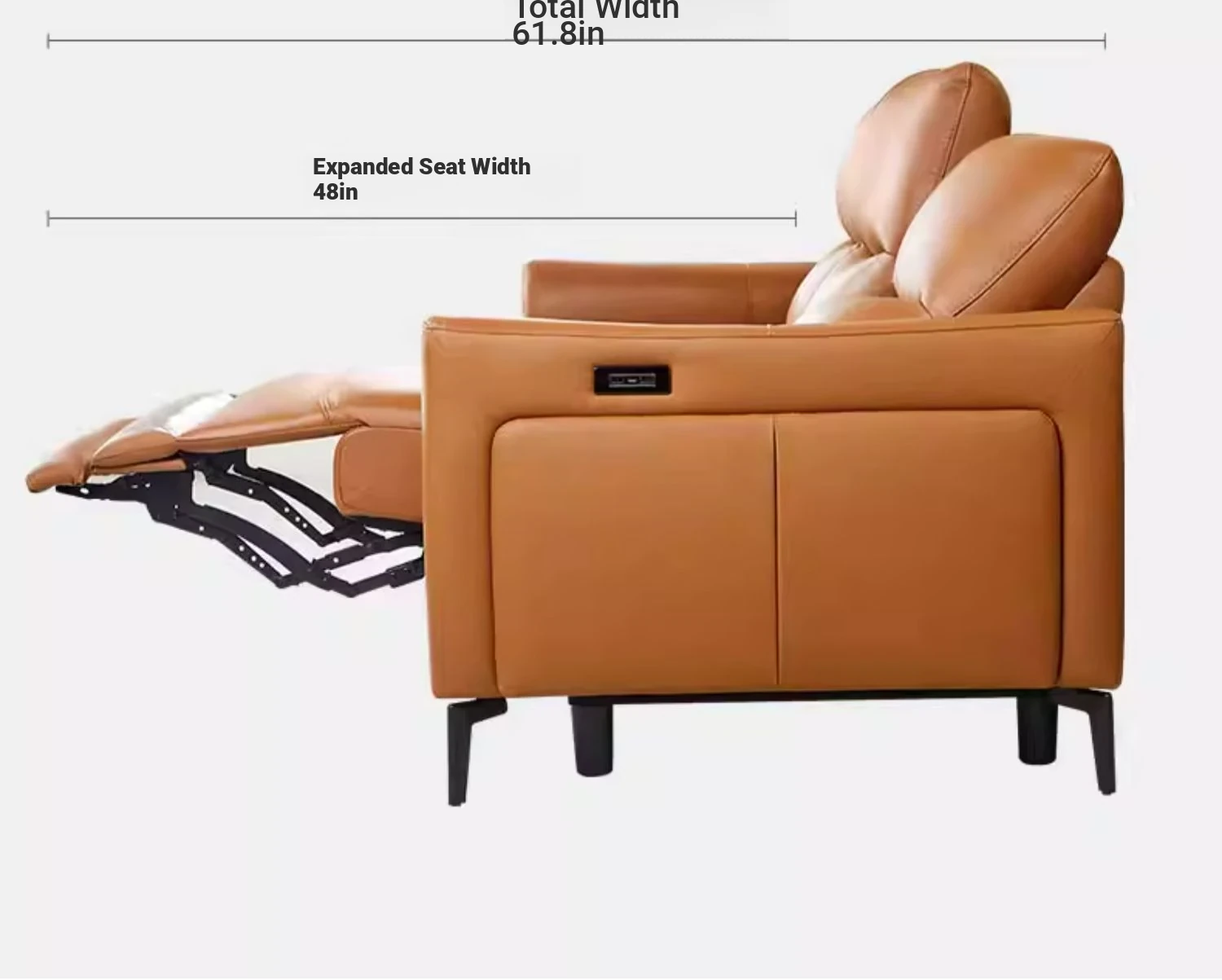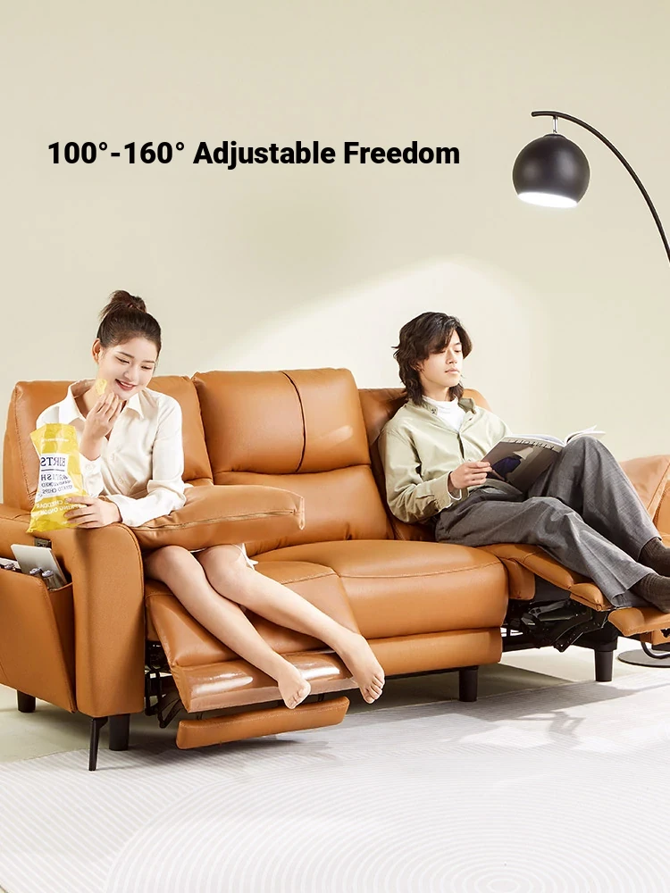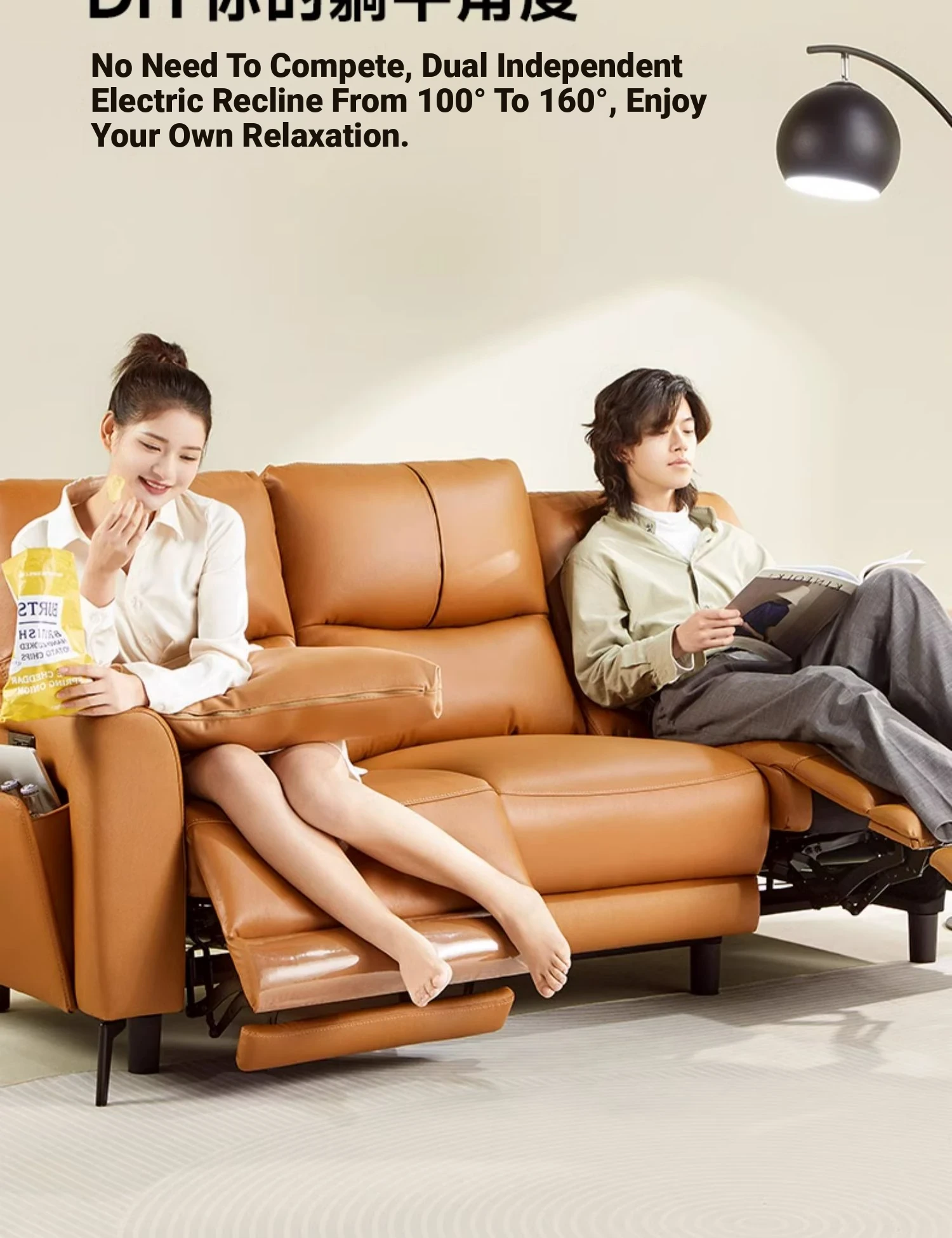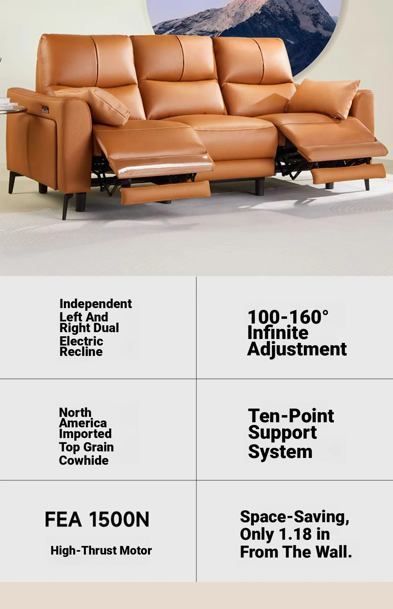 8H Genuine Leather Electric Recliner Sofa - Adjustable Top-Grain Cowhide, Smart Living Room First-Class Double Motor Three-Seater B9