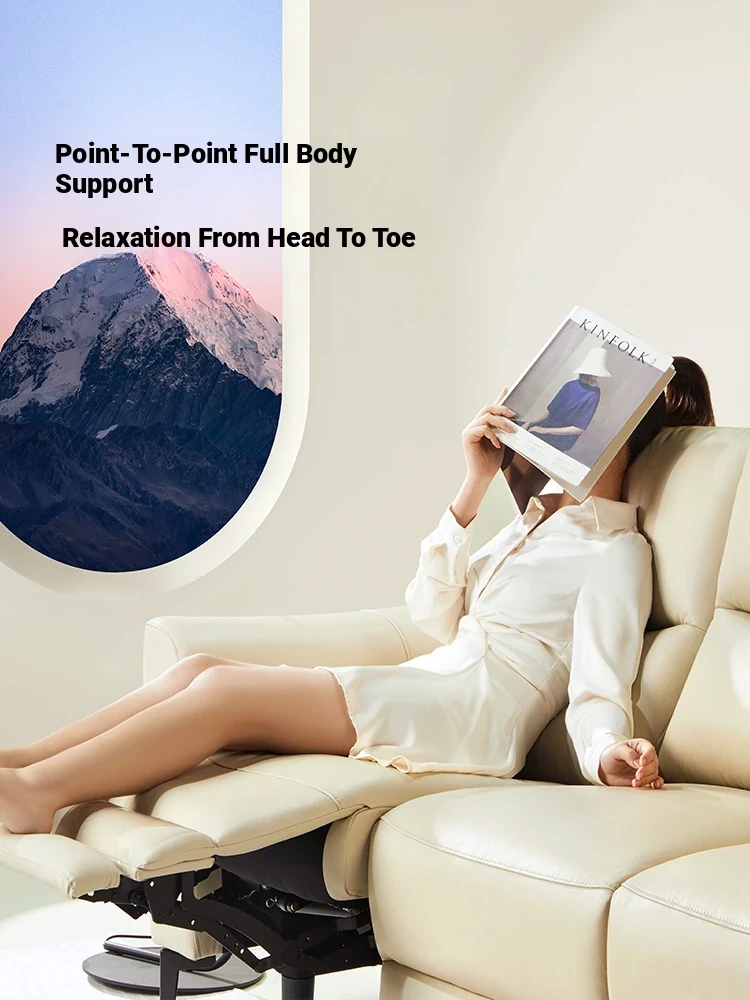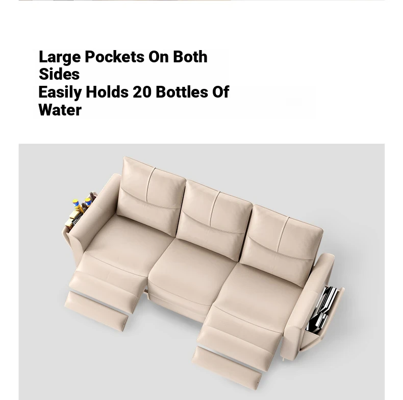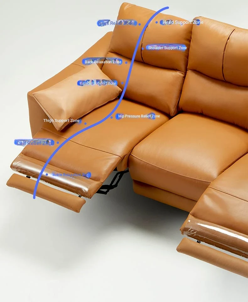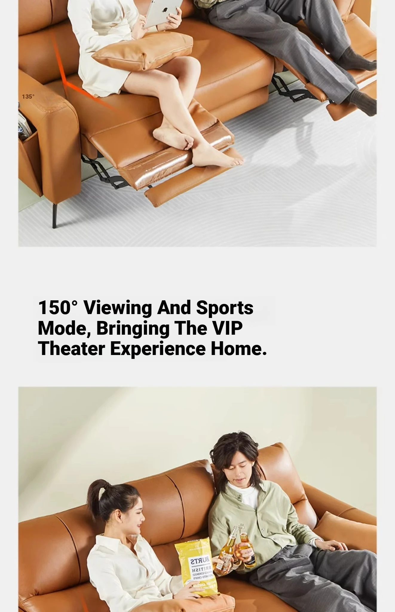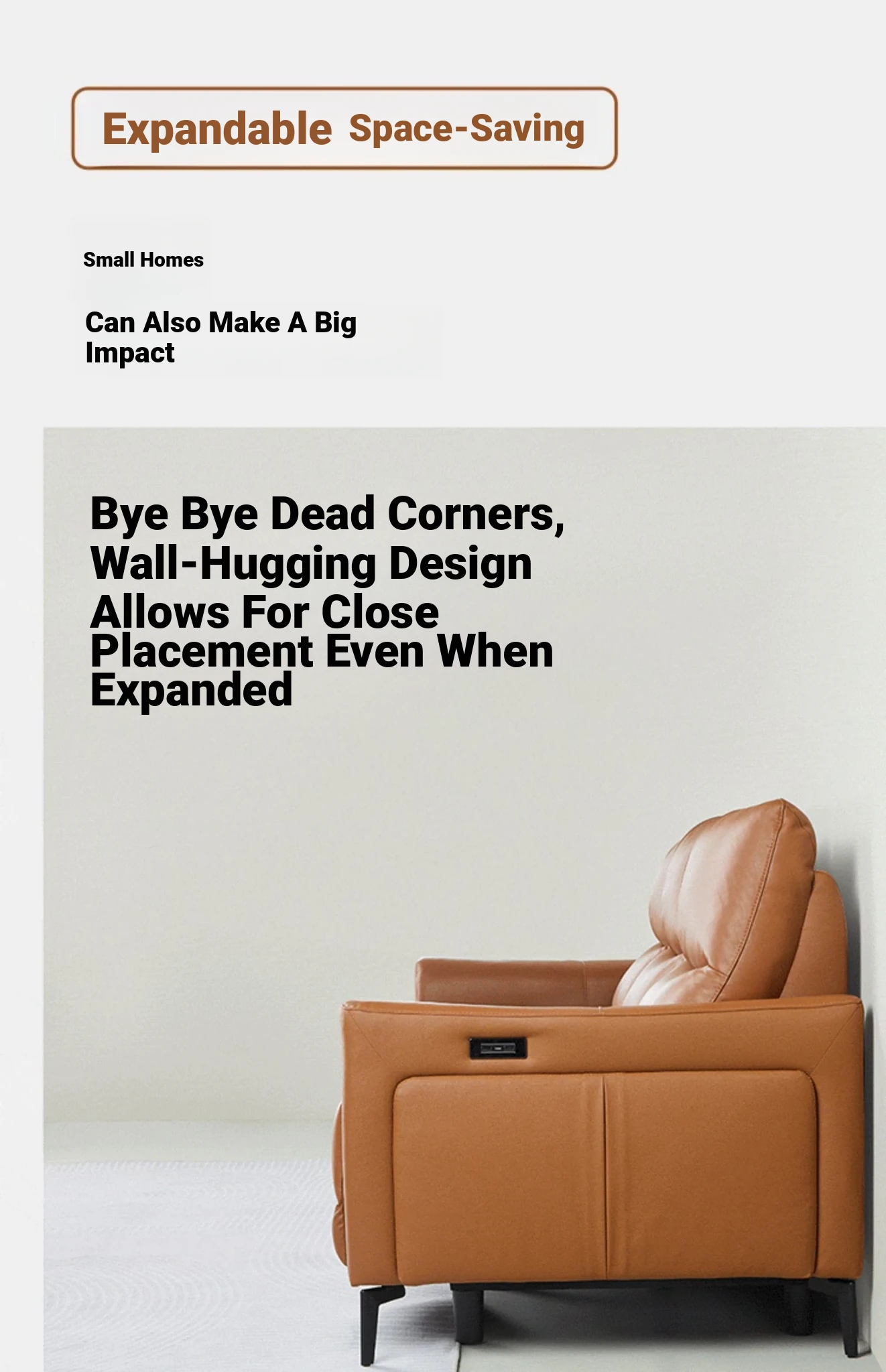 8H Genuine Leather Electric Recliner Sofa - Adjustable Top-Grain Cowhide, Smart Living Room First-Class Double Motor Three-Seater B9