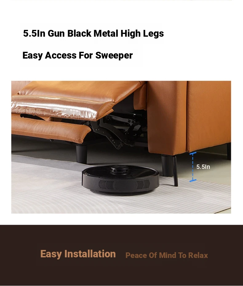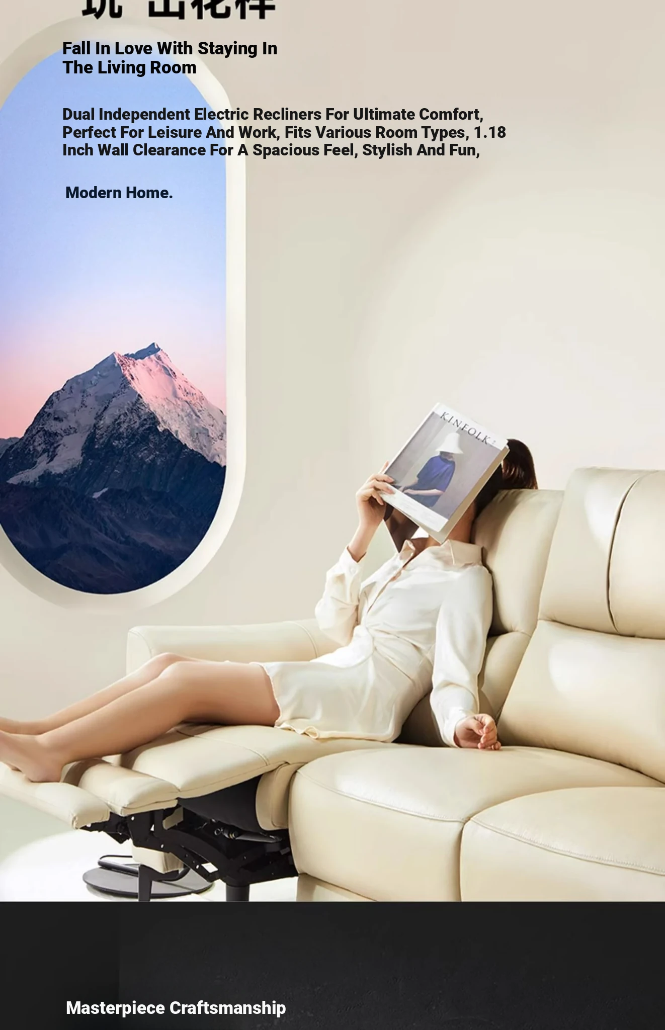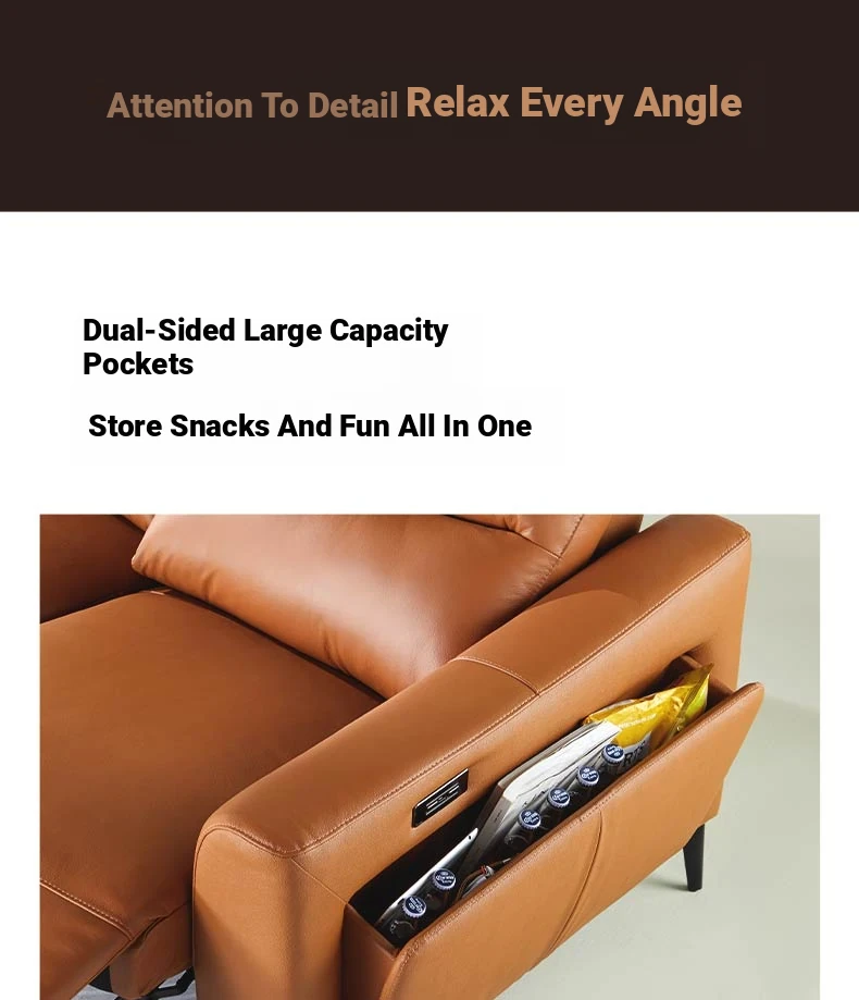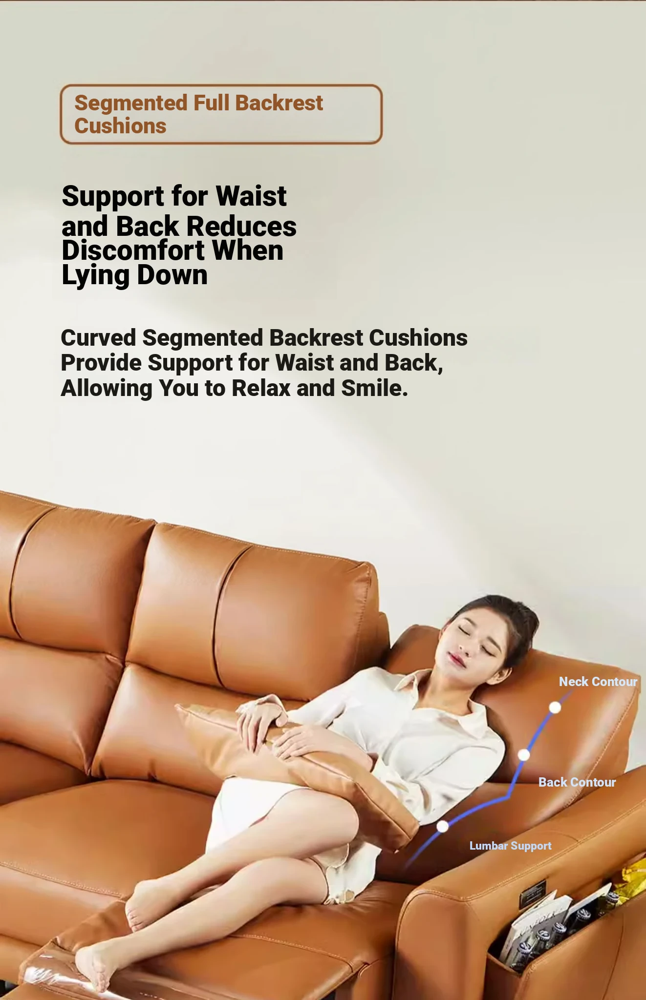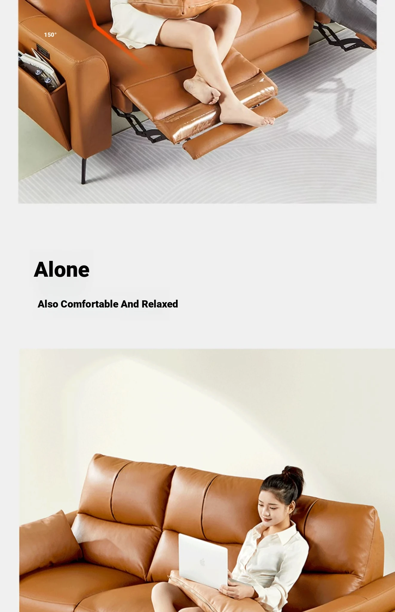 8H Genuine Leather Electric Recliner Sofa - Adjustable Top-Grain Cowhide, Smart Living Room First-Class Double Motor Three-Seater B9