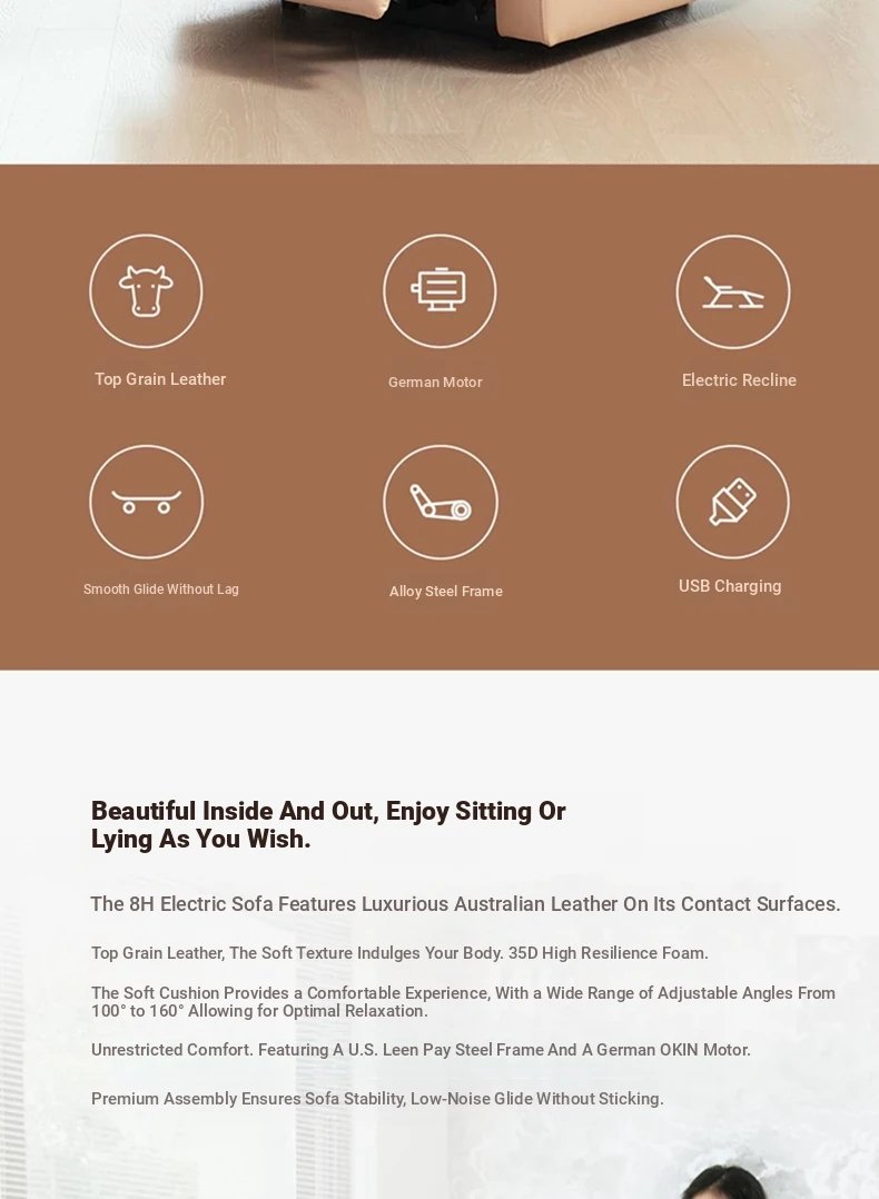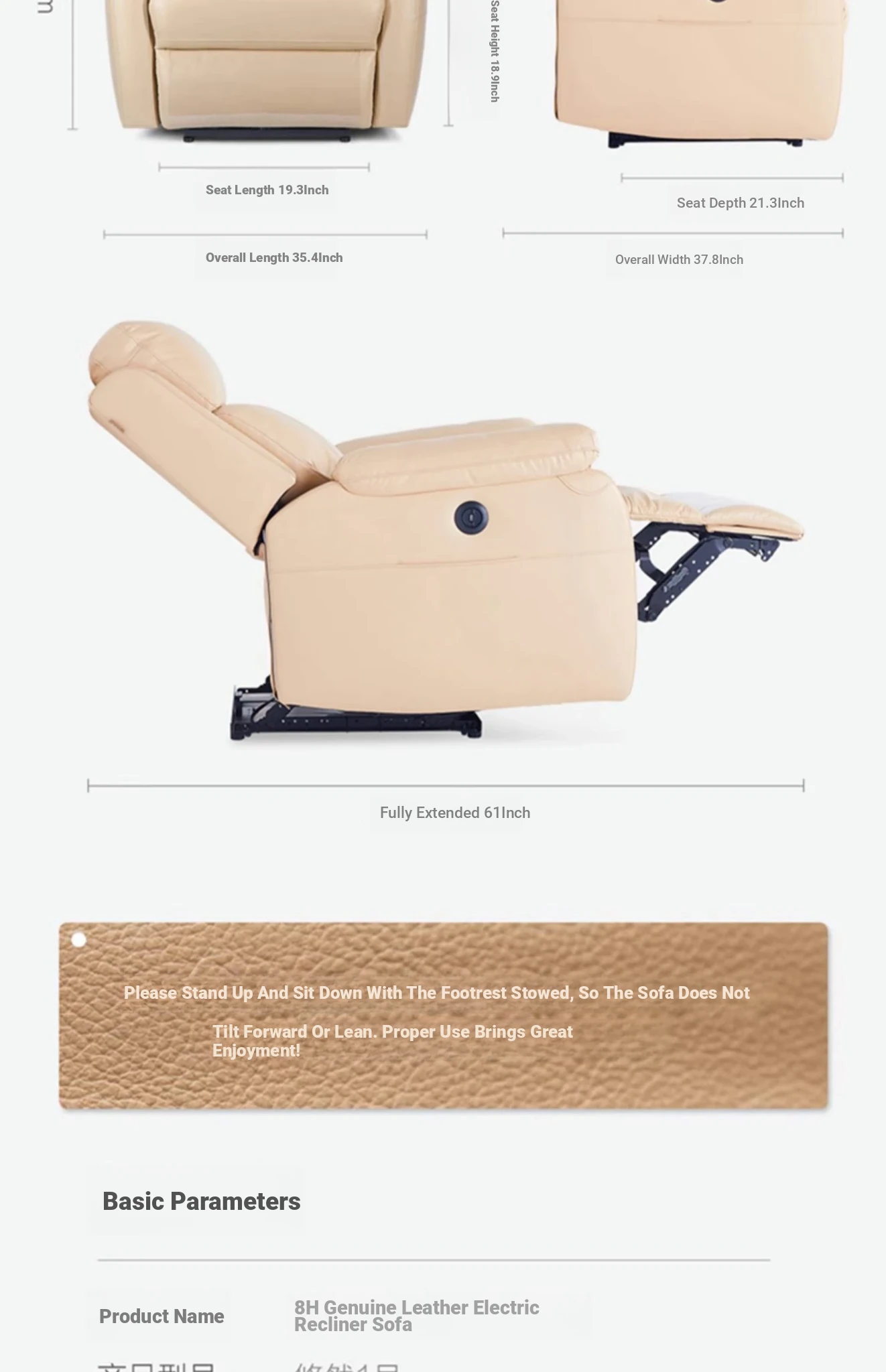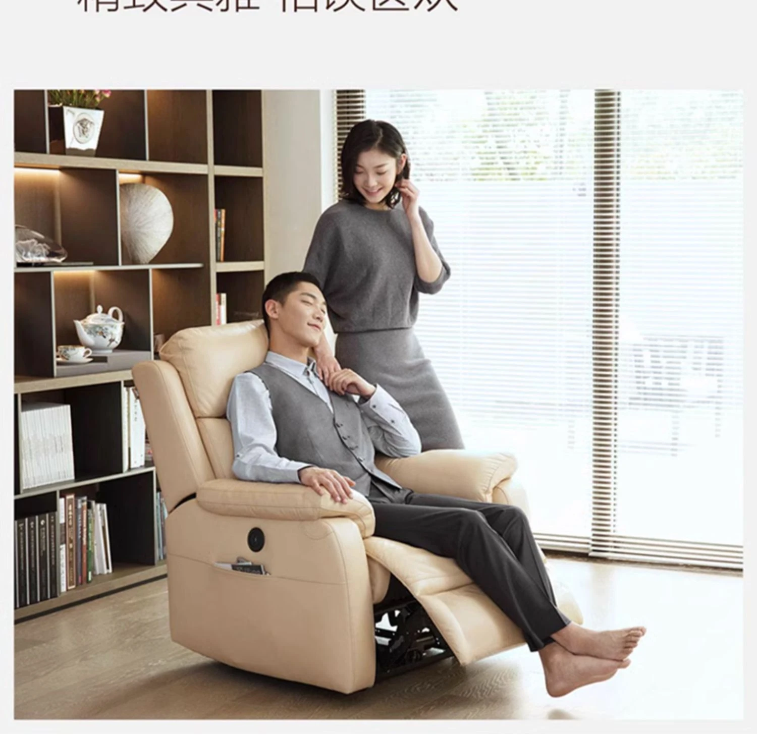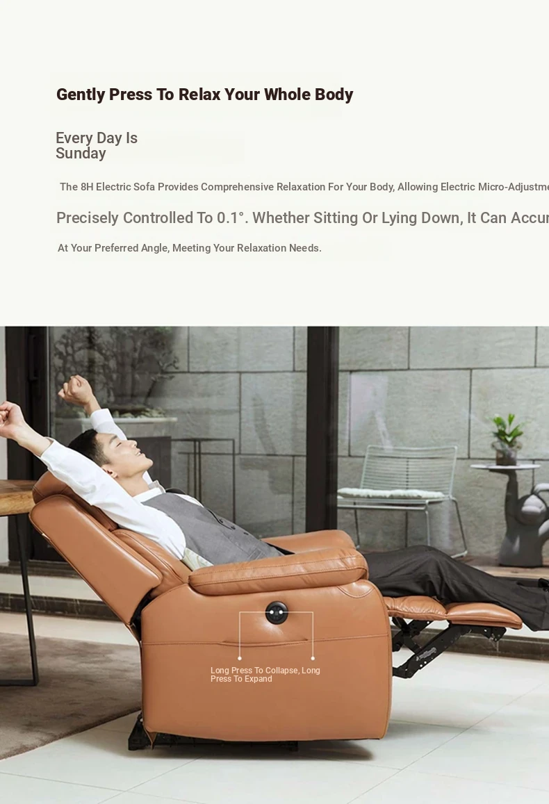 8H Genuine Leather Electric Recliner Sofa - Multi-Functional Top-Grain Cowhide Armchair for Living Room, Perfect for Home Theater and Salon Use, Comfortable Lazy Chair for Ultimate Relaxation