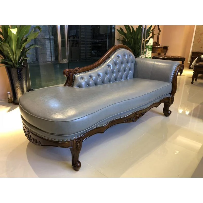 American Genuine Leather Chaise Lounge Sofa - Stylish Solid Wood Lazy Chair for Living Room, Bedroom, and Relaxation - Elegant European Design for Ultimate Comfort