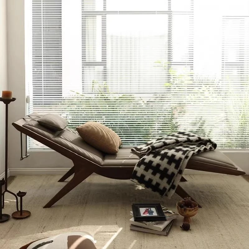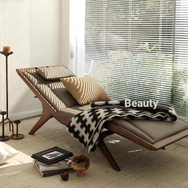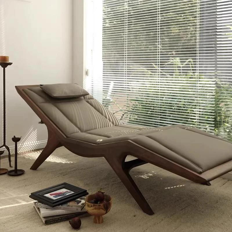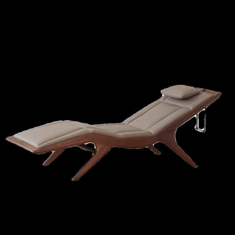 Elegant New Chinese Zen-style Walnut and Ash Wood Recliner - Solid Wood Lounge Chair for Hotels, B&Bs, and Offices - Chic Beauty Chaise Lounge