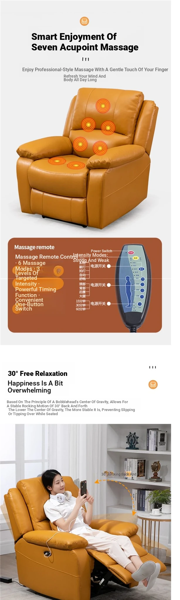 Electric + USB charging + massage + heating Italian orange breathing skin