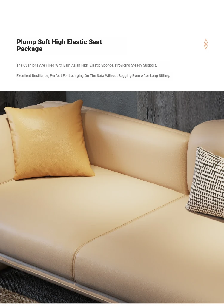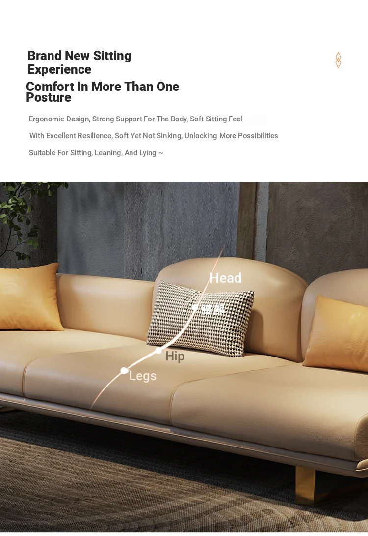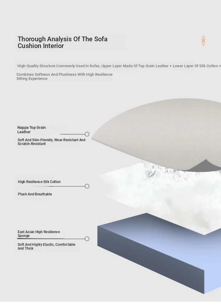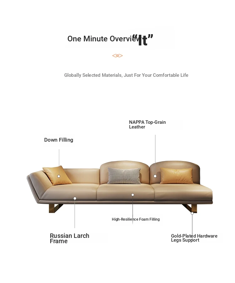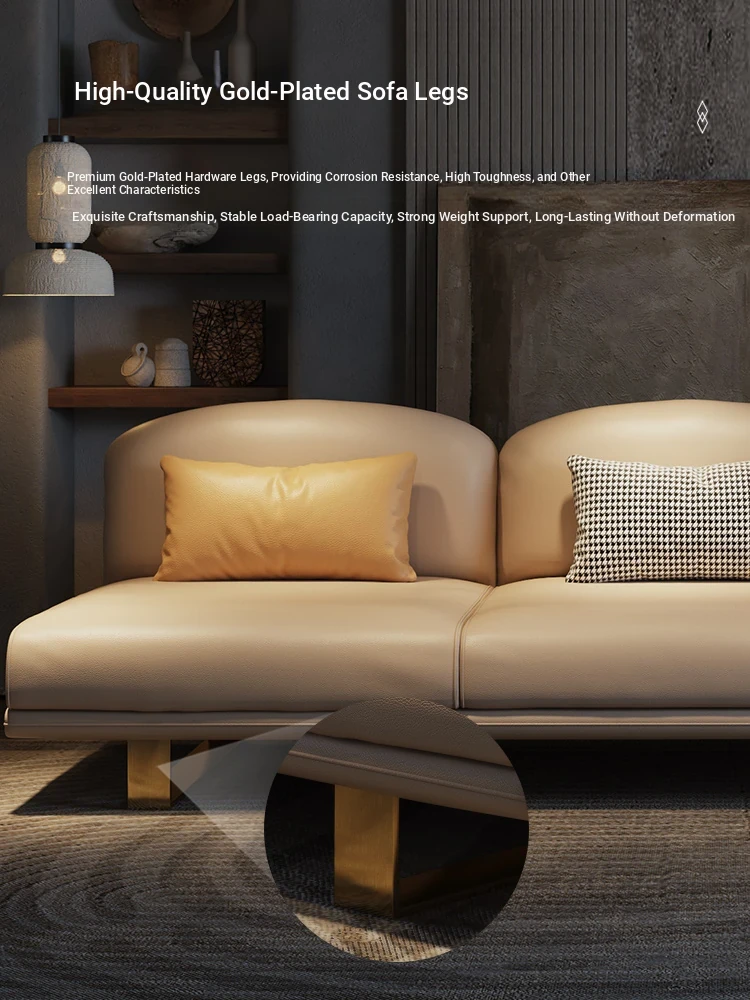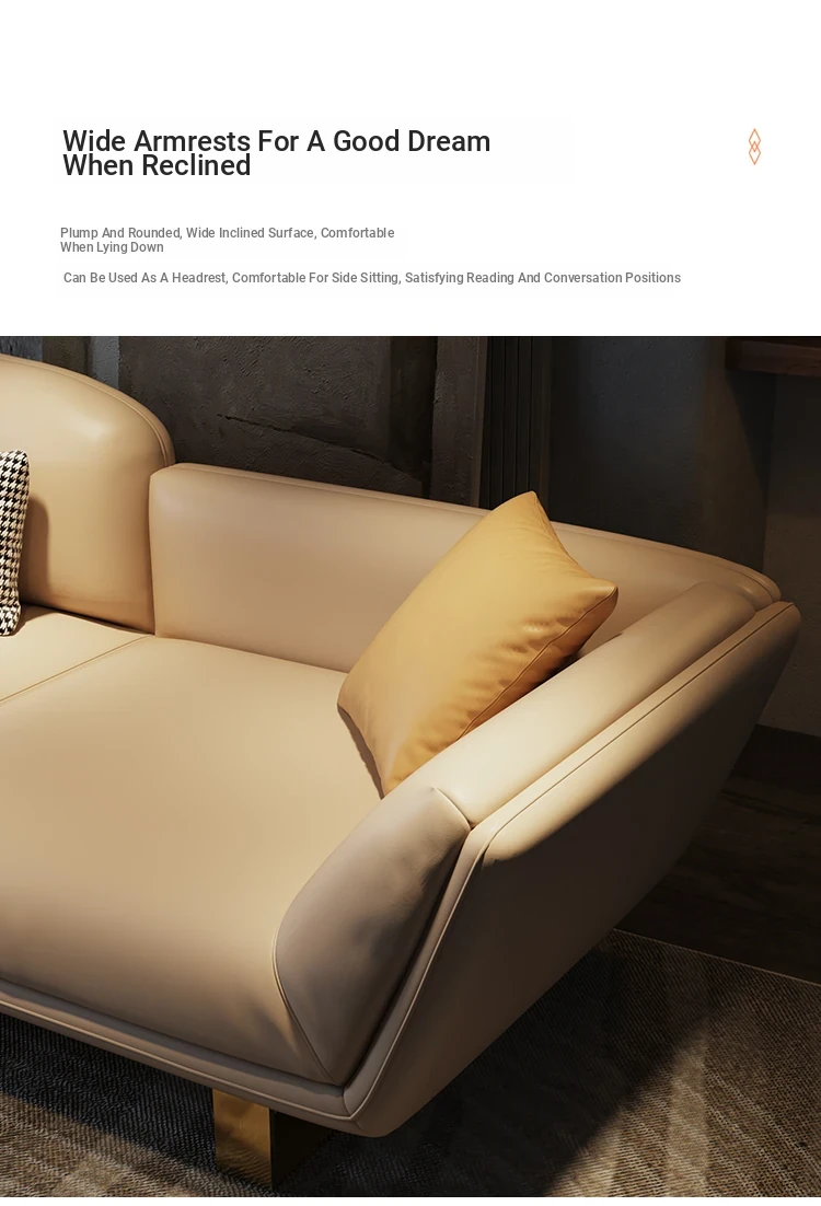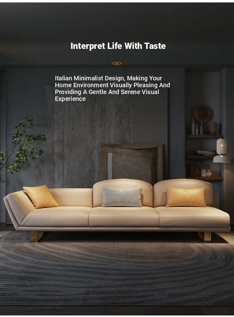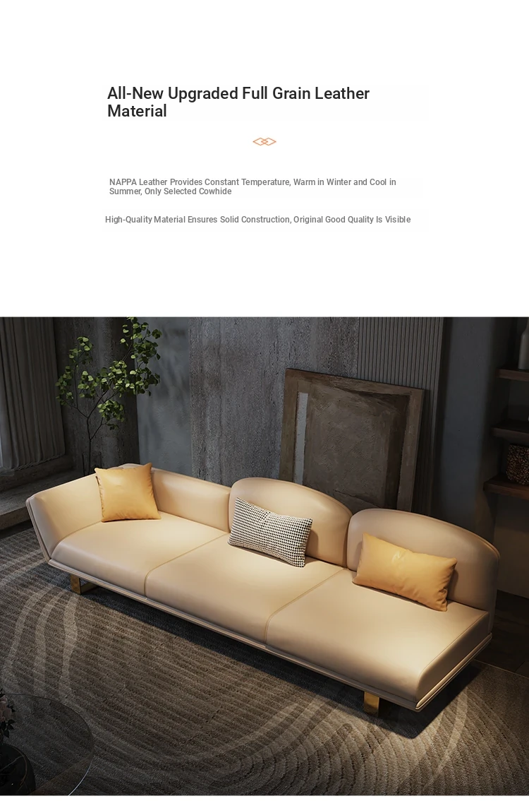 Italian Luxury Leather Sofa - Premium Napa Top-Grain Cowhide, Nordic Style, Perfect for Spacious Living Rooms, Featuring an Elegant Chaise Lounge Design
