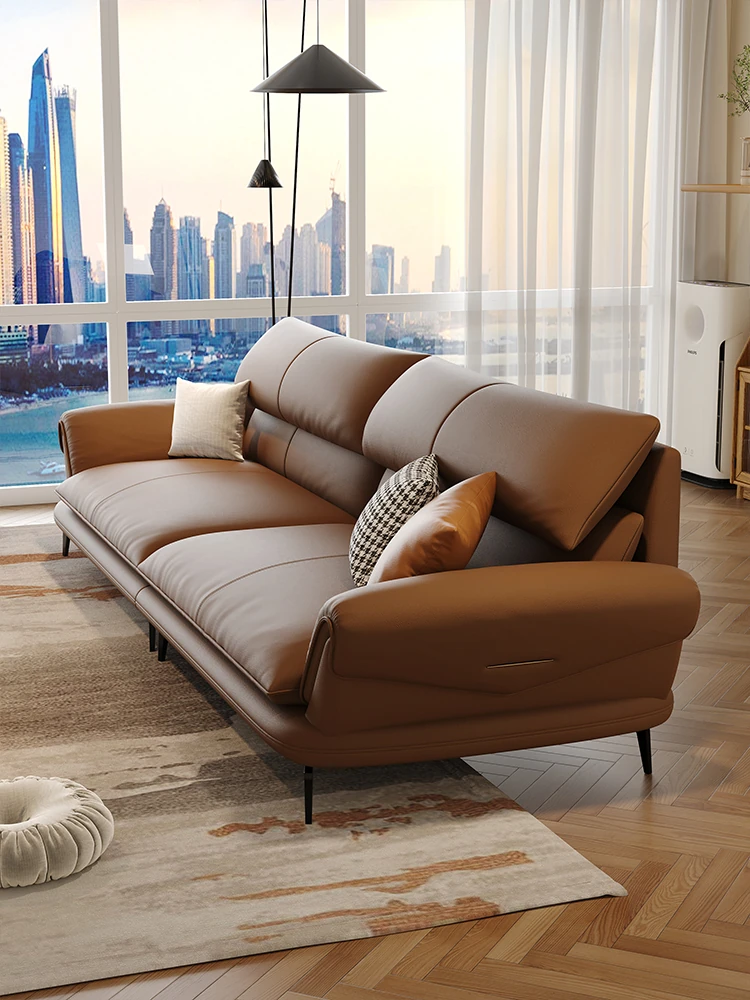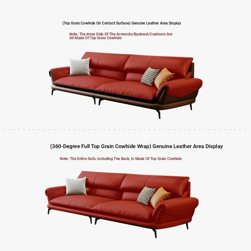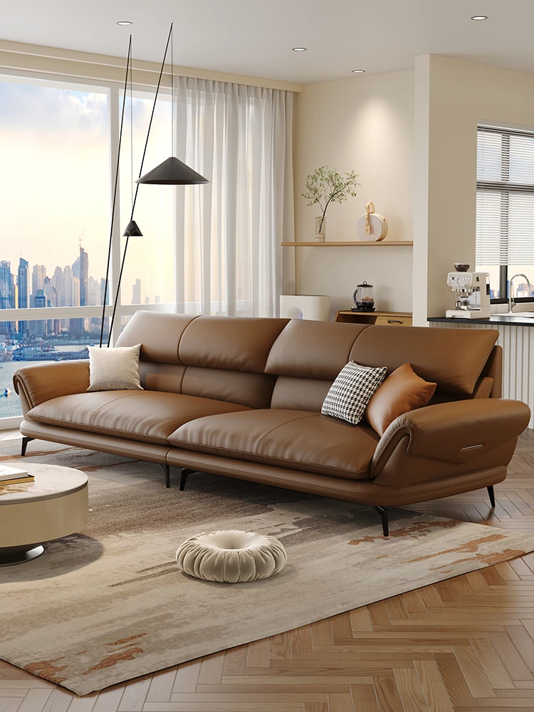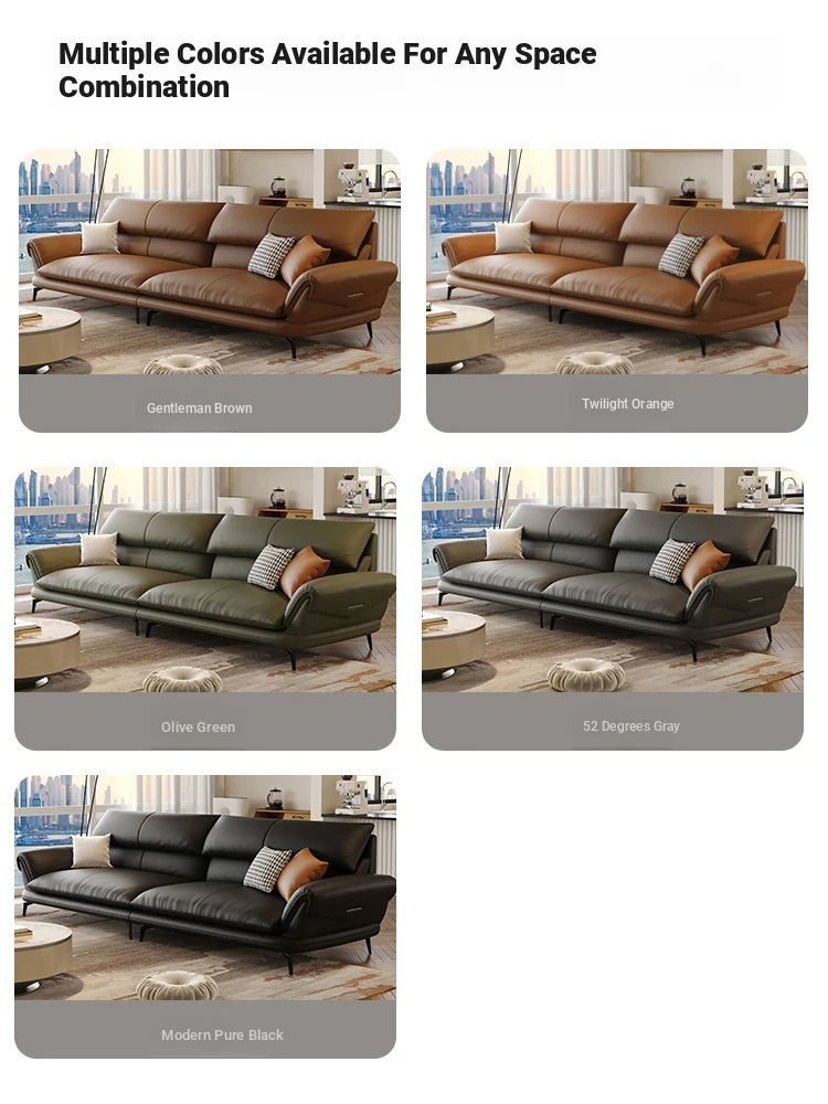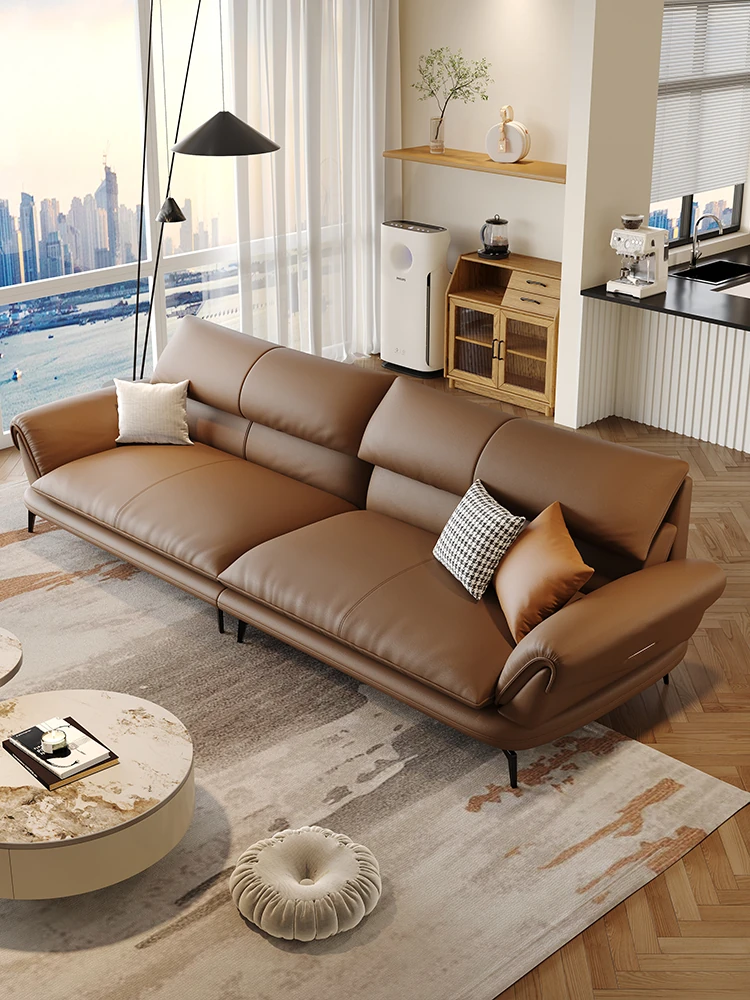 Italian Minimalist Genuine Leather Sofa - Top Grain Cowhide Modern Simple Design for Small to Large Spaces - Luxurious 3-4 Seater for Your Living Room