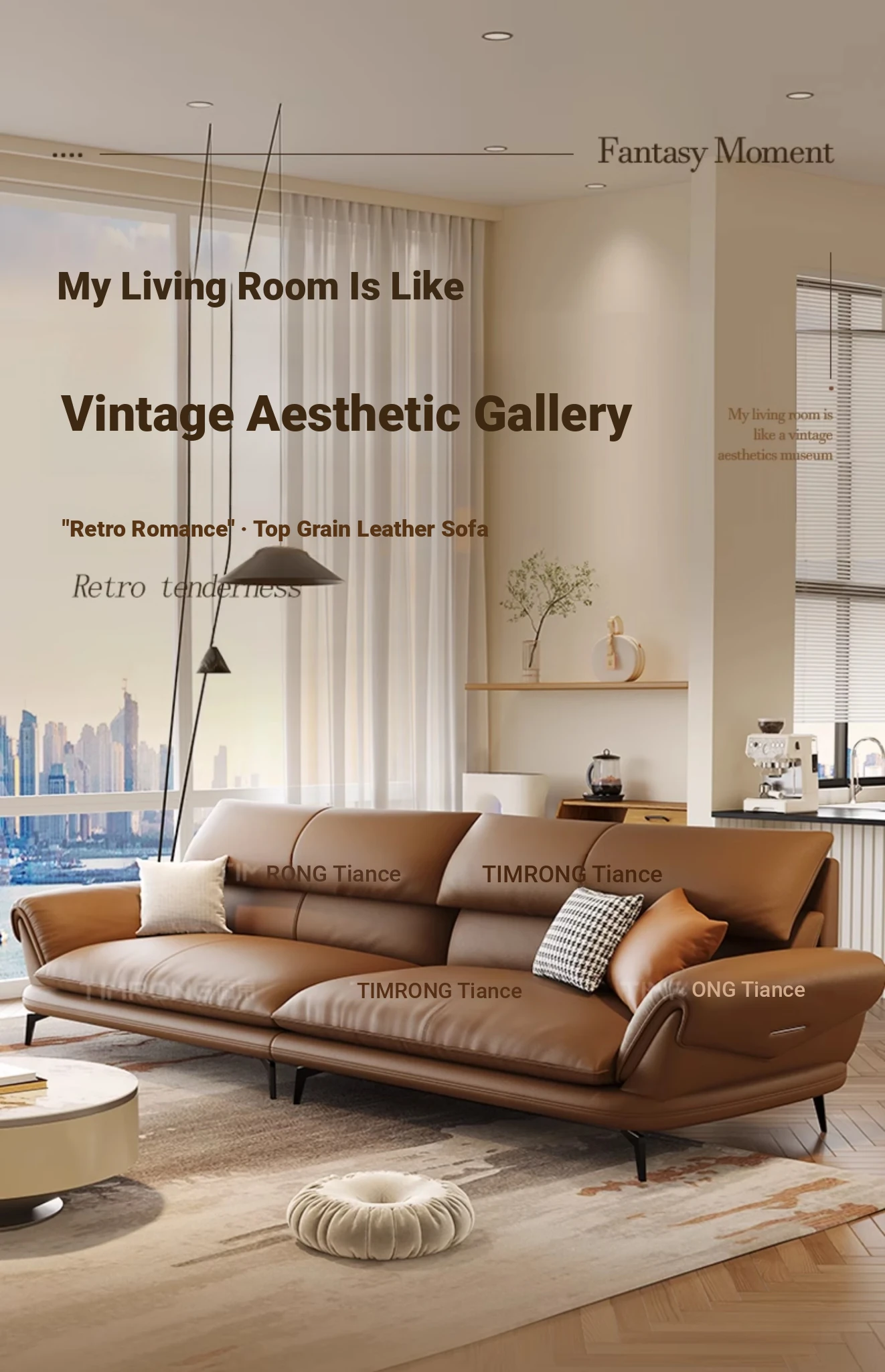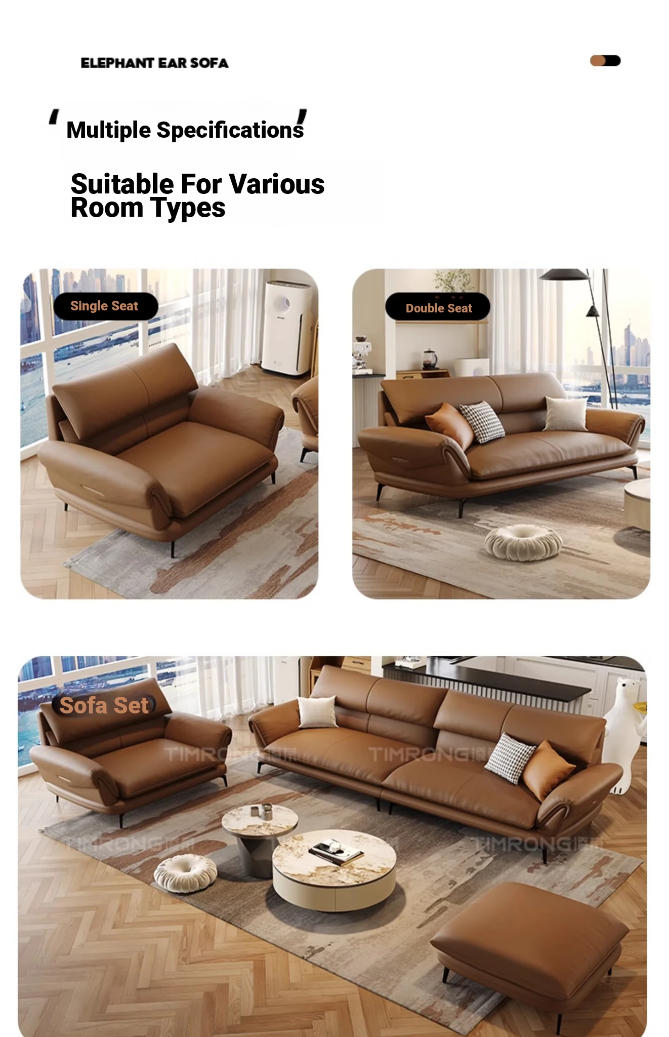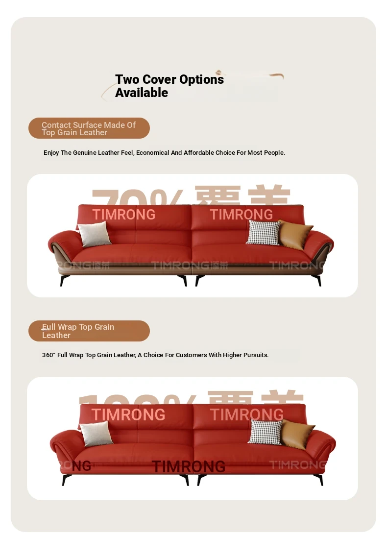 Italian Minimalist Genuine Leather Sofa - Top Grain Cowhide Modern Simple Design for Small to Large Spaces - Luxurious 3-4 Seater for Your Living Room