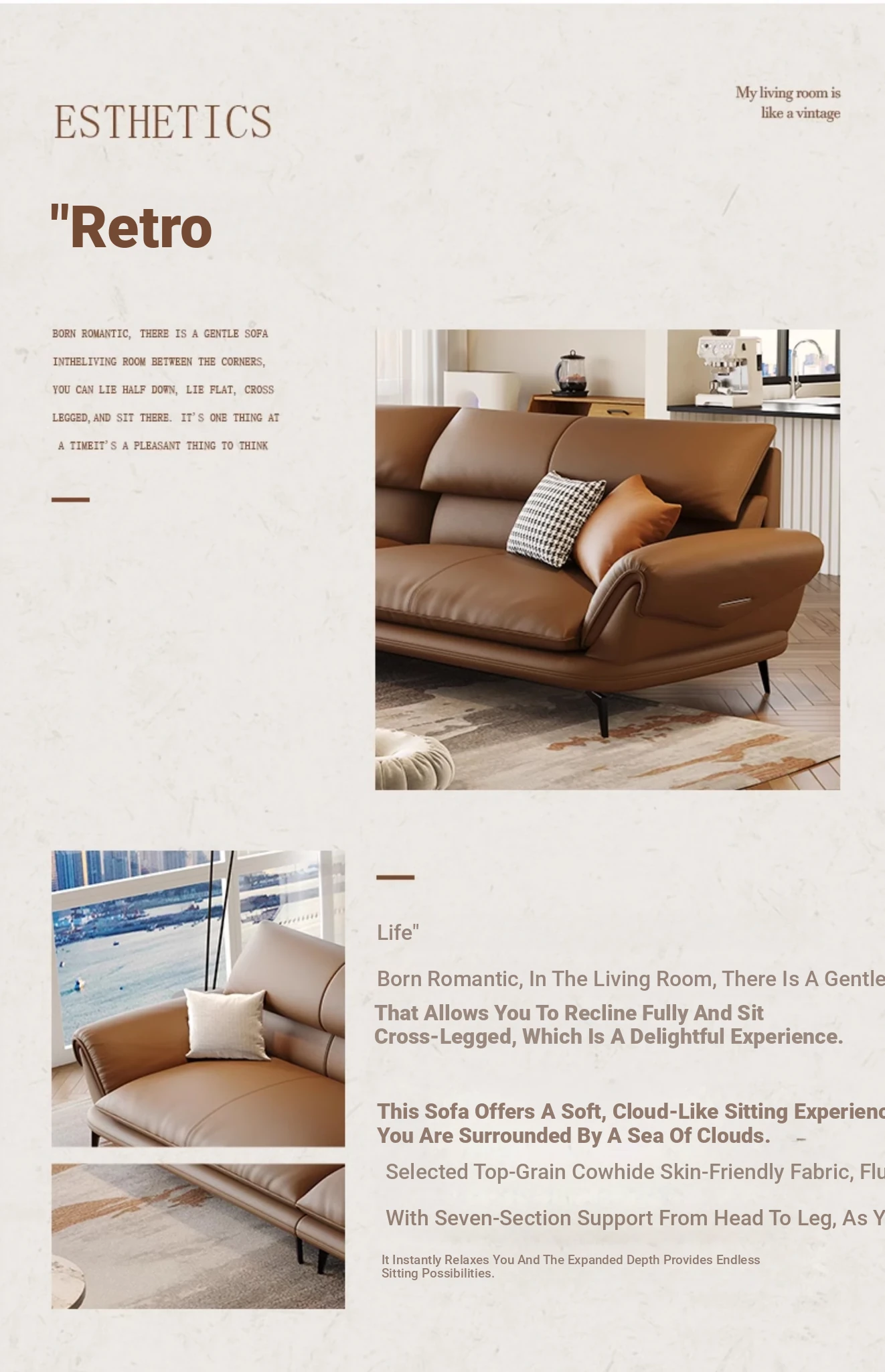 [360-degree full wrap thickened top layer cowhide + high density rebound sponge] 122.05in multi-person.