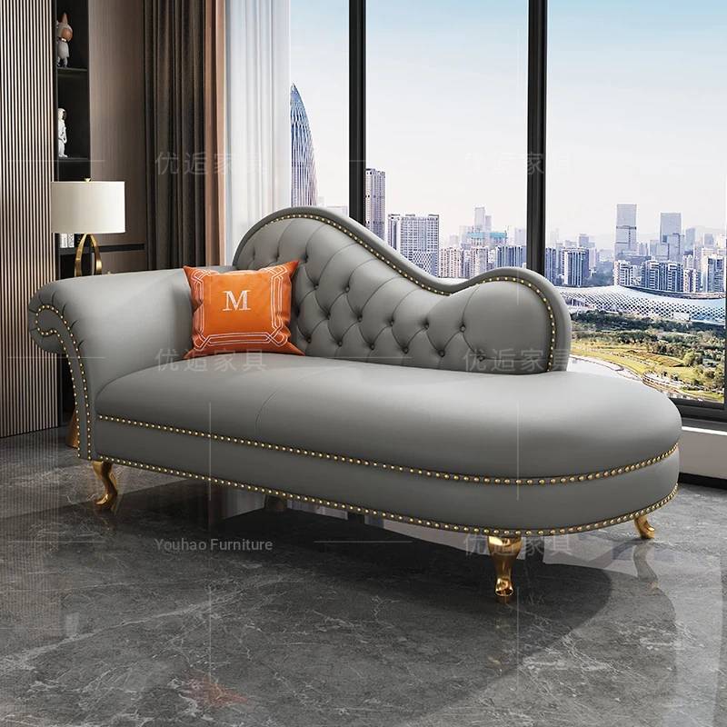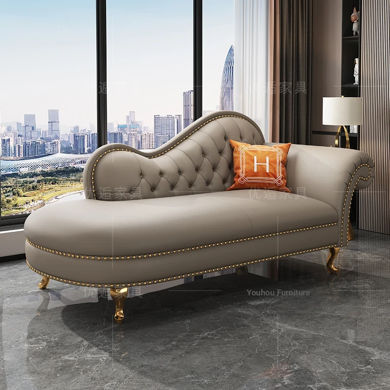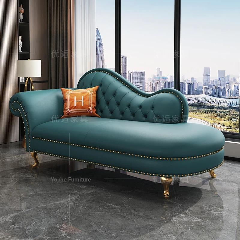 Luxury American Style Chaise Lounge – Genuine Leather Glamorous Chair for Living Room, Bedroom, or Balcony – Perfect Lazy Sofa for Stylish Relaxation