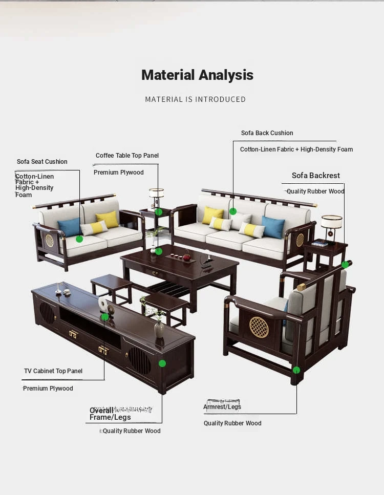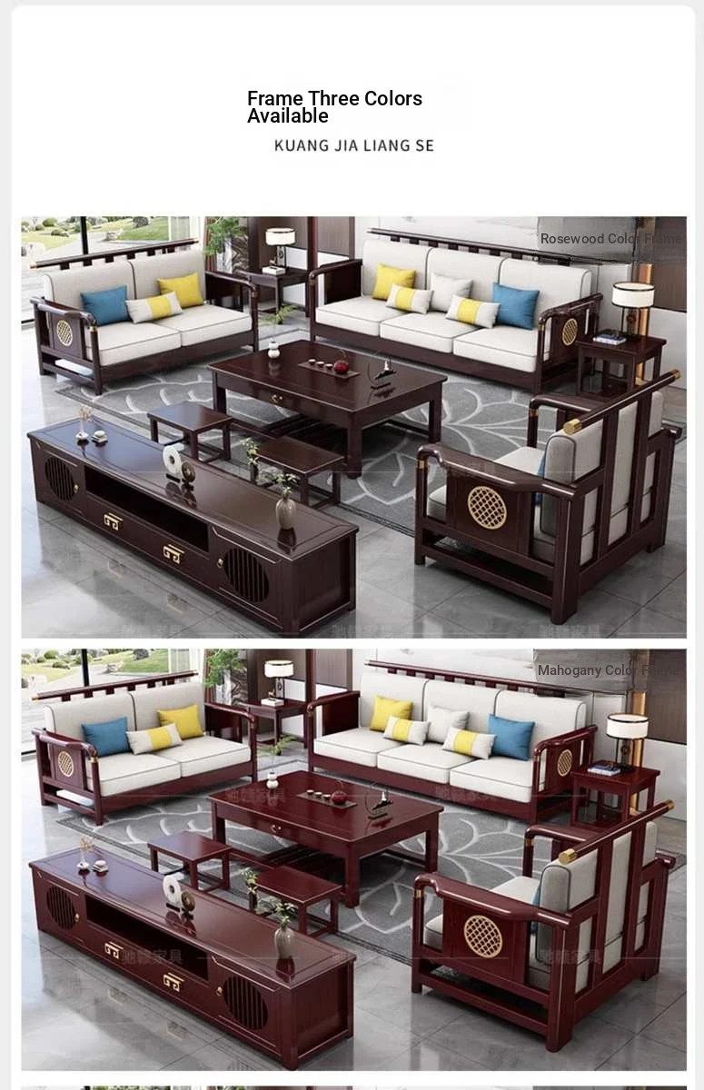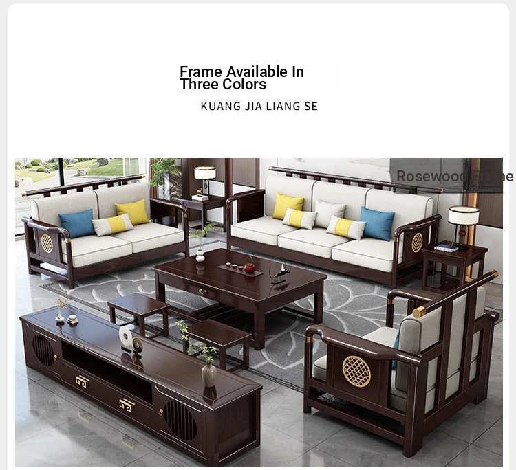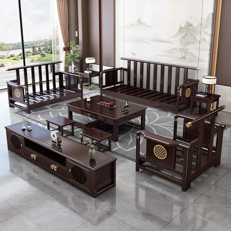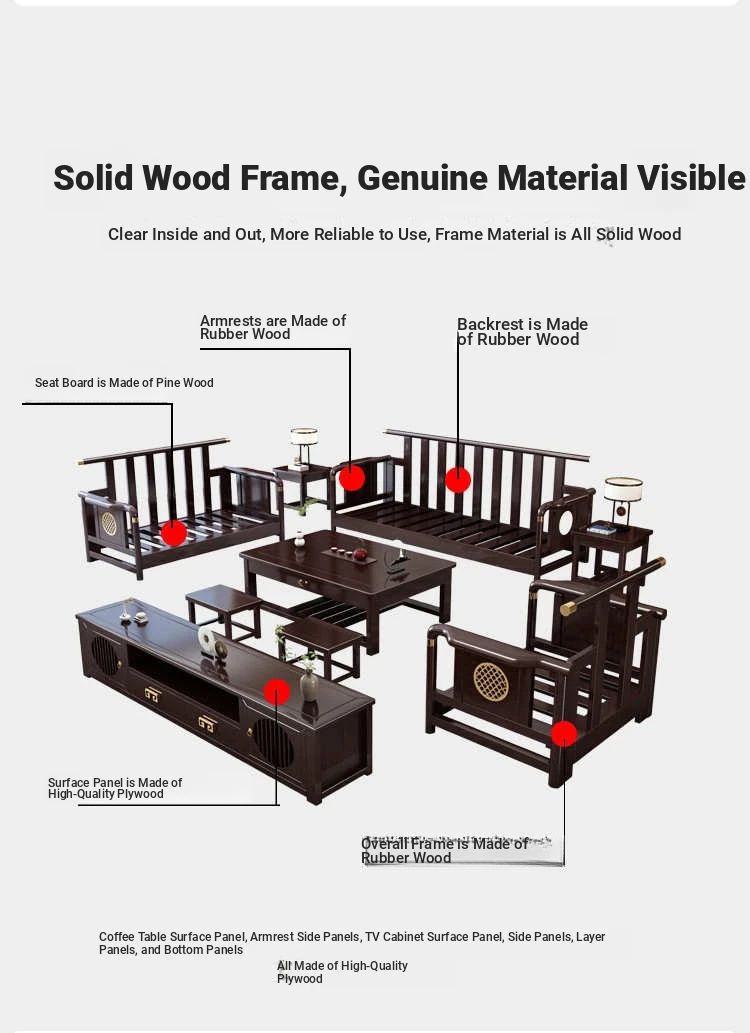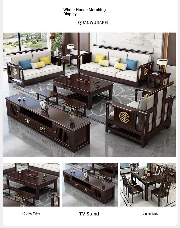 Solid Wood New Chinese Style Sofa for Rural Self-Built Homes - Three-Seater Compact Design, Perfect for Small Spaces, Made from Durable Rubber Wood, Embrace the Essence of Chinese Aesthetics in Your Home.