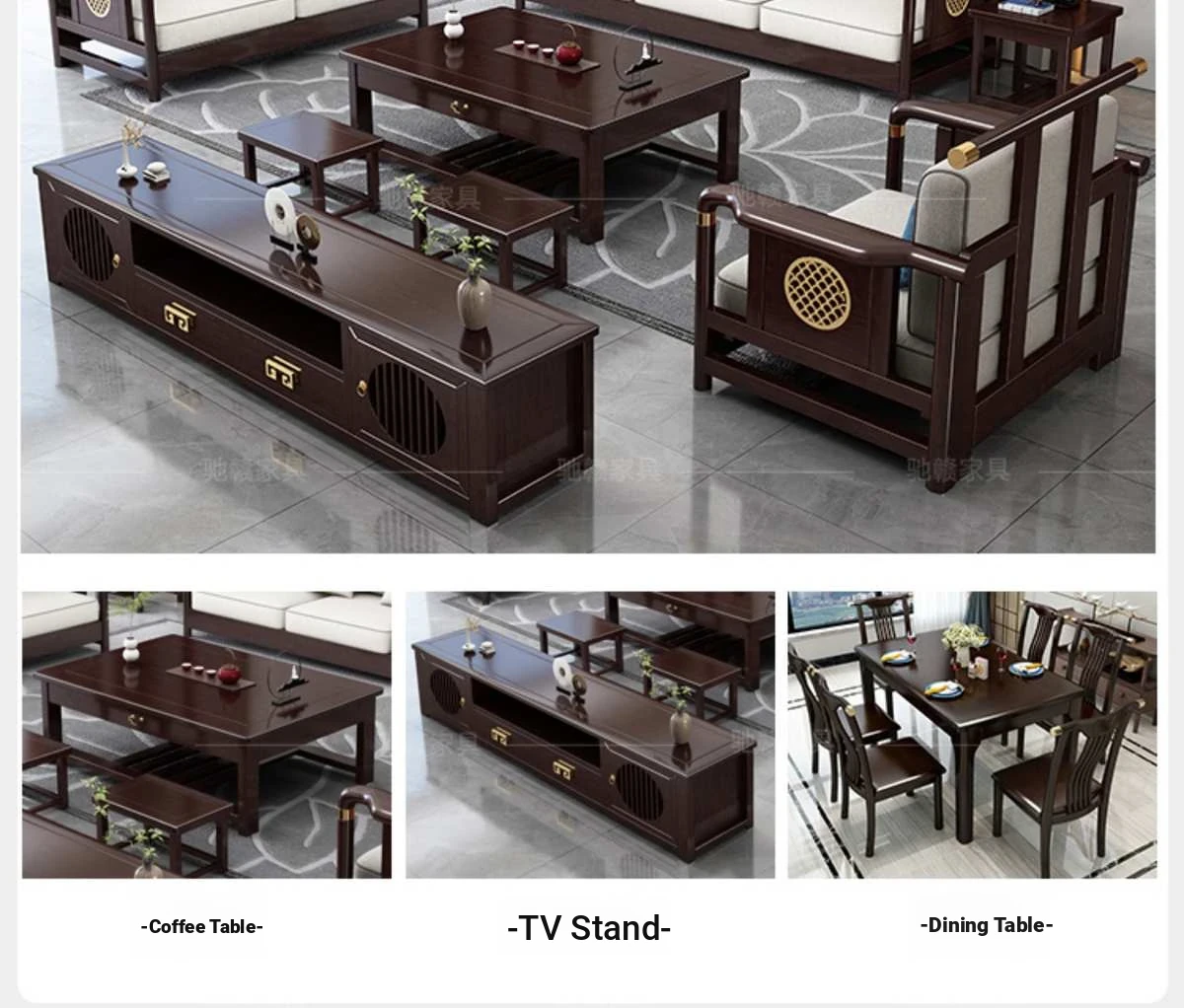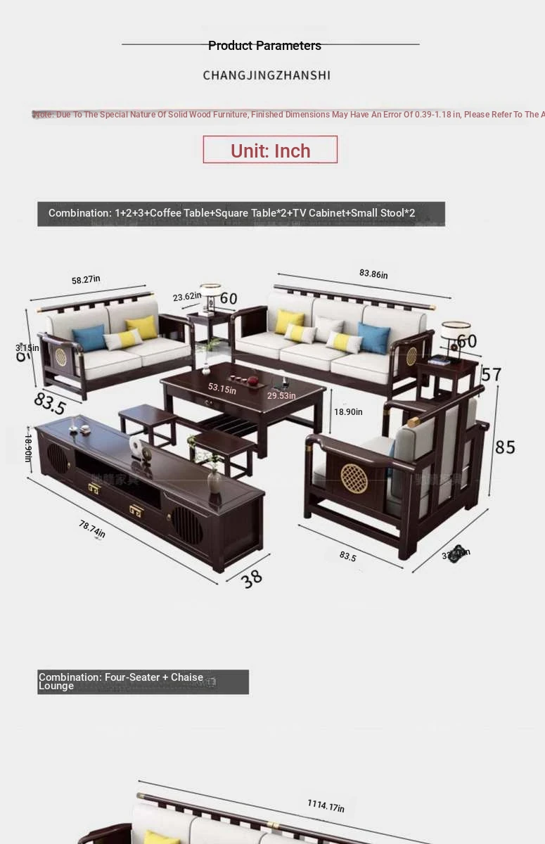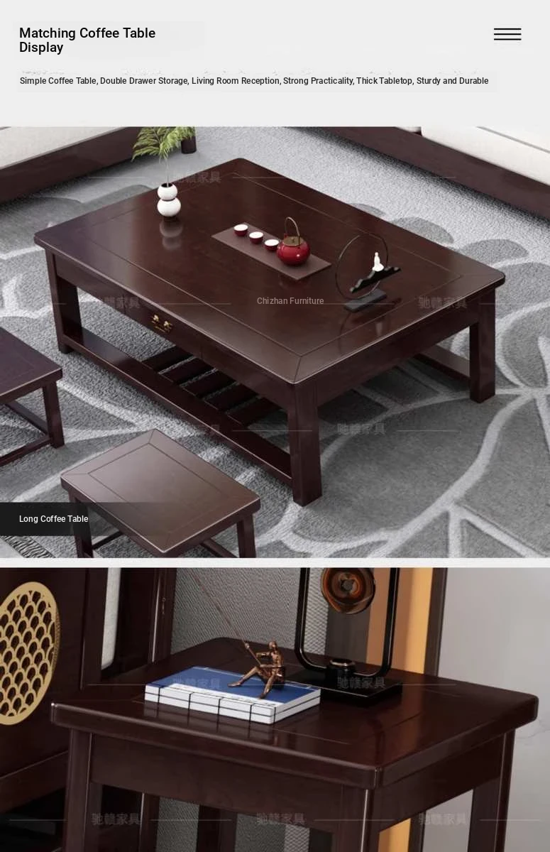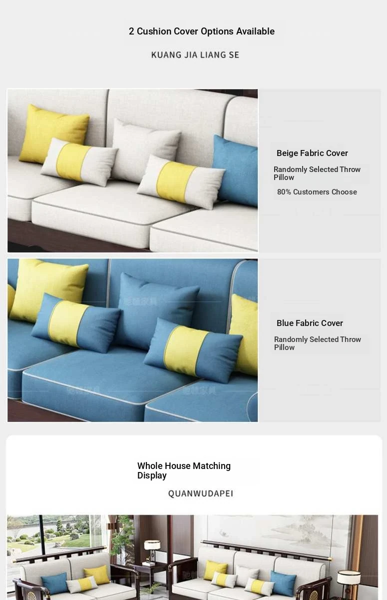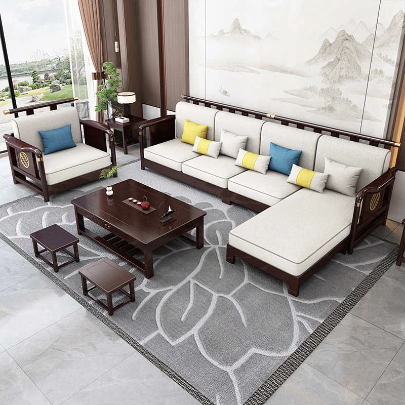 Solid Wood New Chinese Style Sofa for Rural Self-Built Homes - Three-Seater Compact Design, Perfect for Small Spaces, Made from Durable Rubber Wood, Embrace the Essence of Chinese Aesthetics in Your Home.