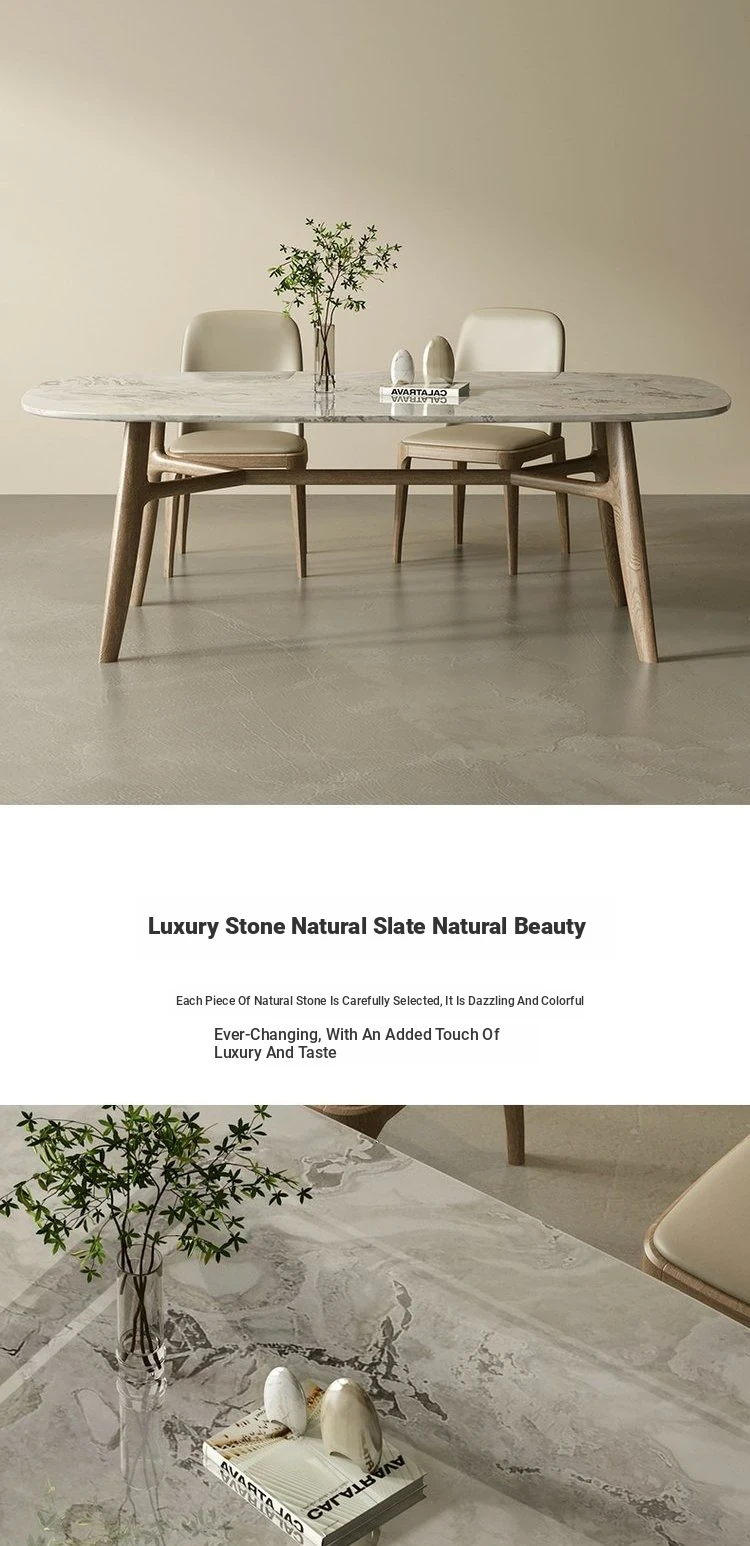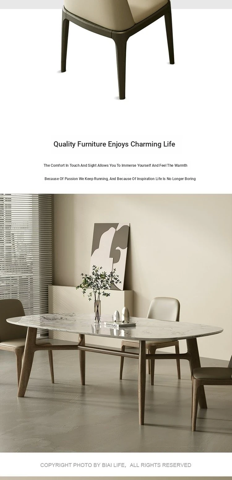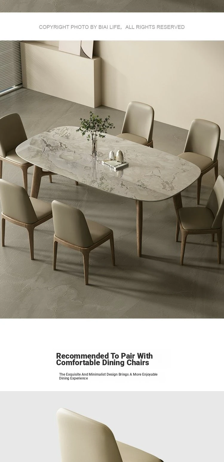 Trendy Nordic Luxury Imported Natural Marble Dining Table - Italian Modern Minimalist Rectangular Solid Wood Dining Set for Stylish Homes