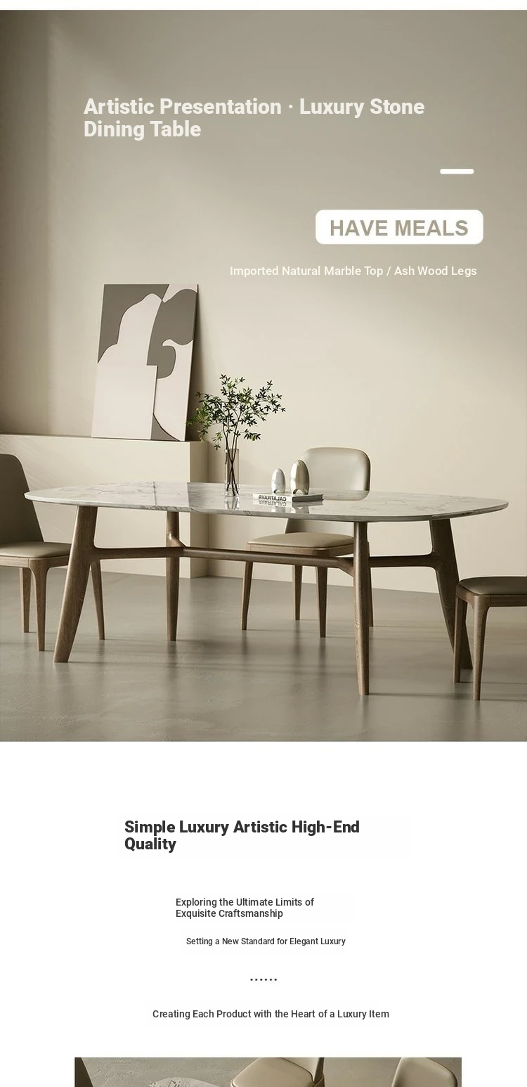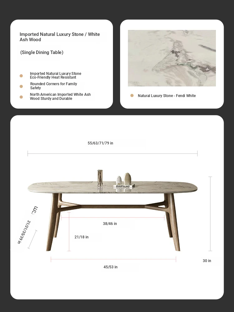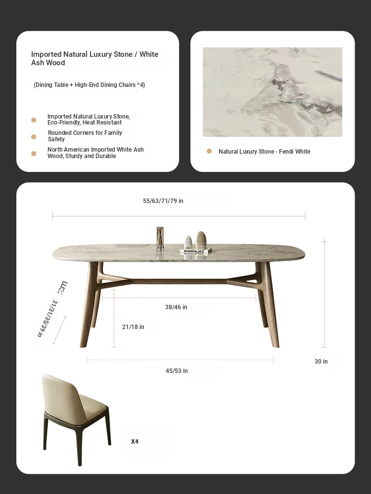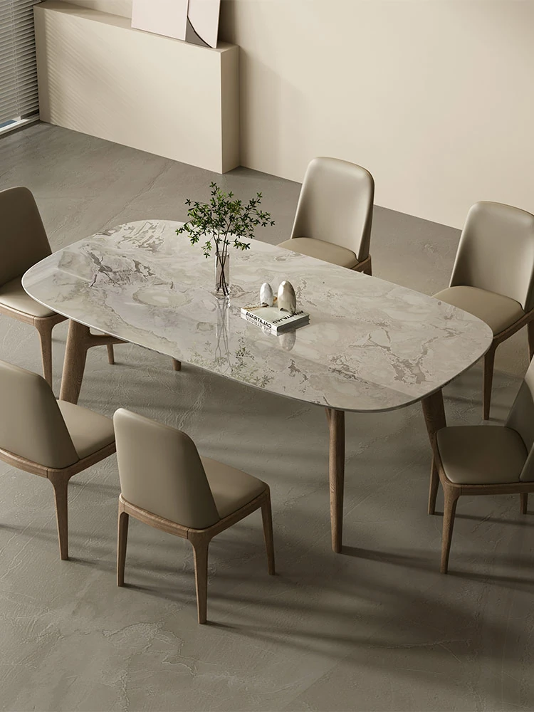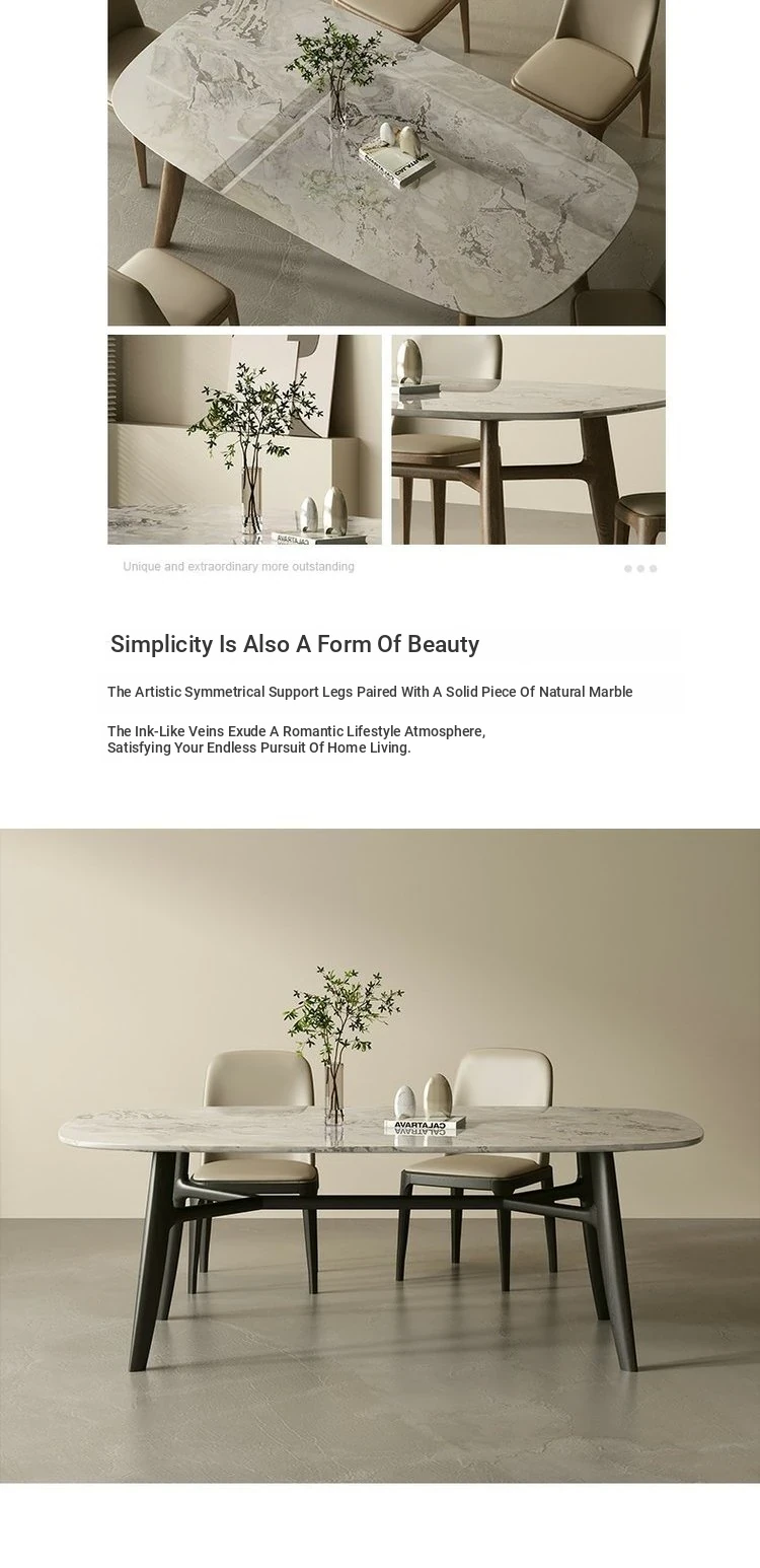 Trendy Nordic Luxury Imported Natural Marble Dining Table - Italian Modern Minimalist Rectangular Solid Wood Dining Set for Stylish Homes