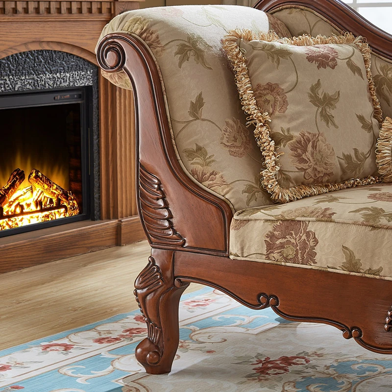 アメリカンスタイルの無垢材カウチチェア|リビングにぴったりな布製のリラックスソファ|欧風デザインの贅沢なレイジーチェア|寝室にも最適な一人用シングルソファで、心地よいひとときをお楽しみください!