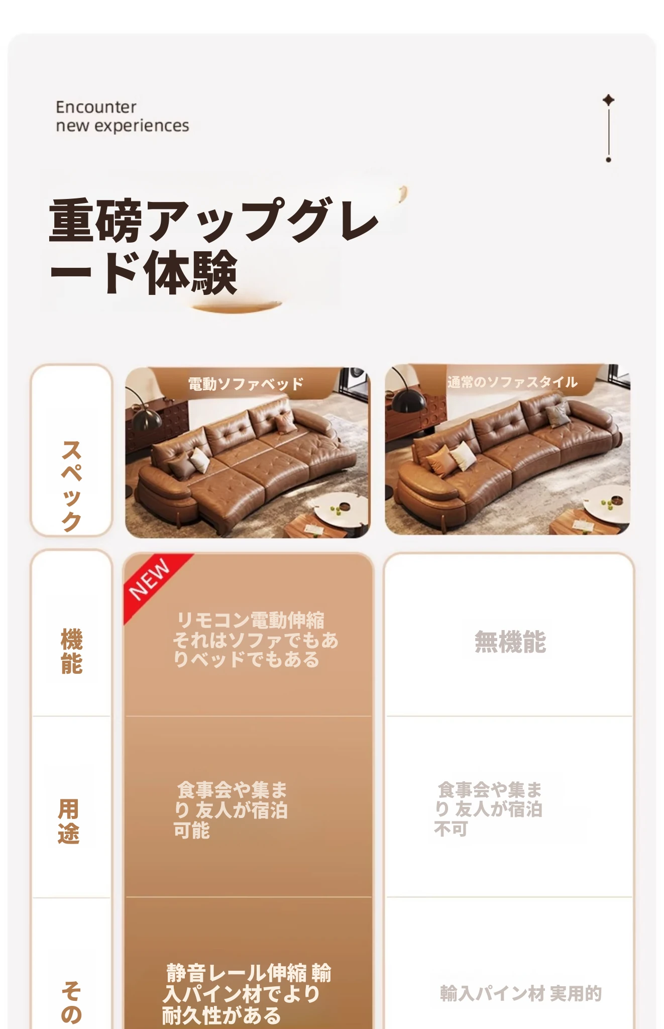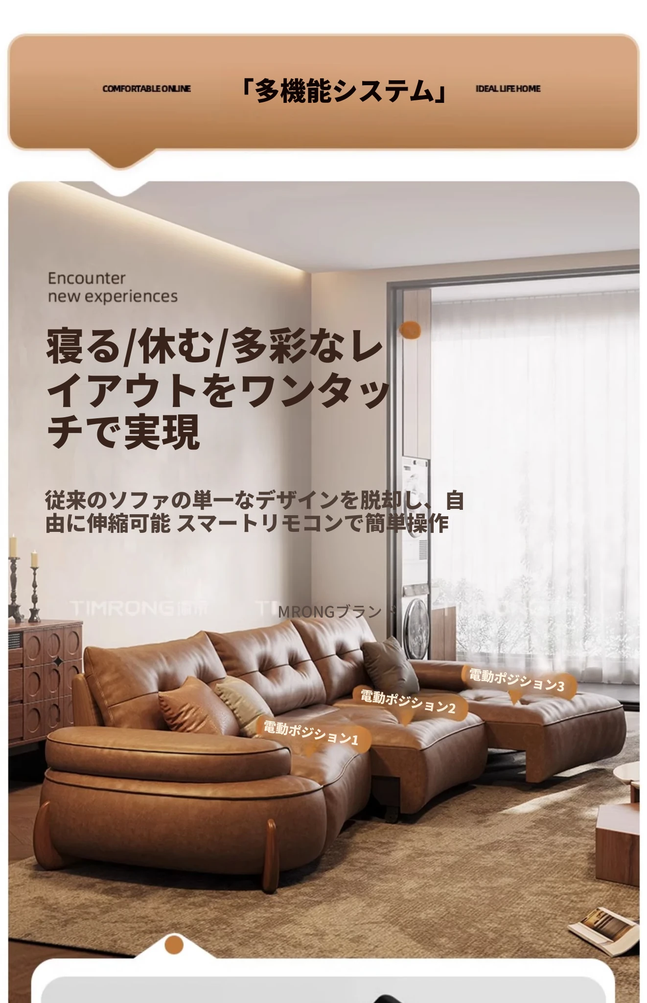 アーチ型カシューナッツ電動ソファ|イタリアンレトロデザインで、リビングにぴったり!コンパクトな空間でも使えるスライド機能付き、背もたれなしで開放感を演出する3人掛け。おしゃれで機能的な居心地を手に入れよう!