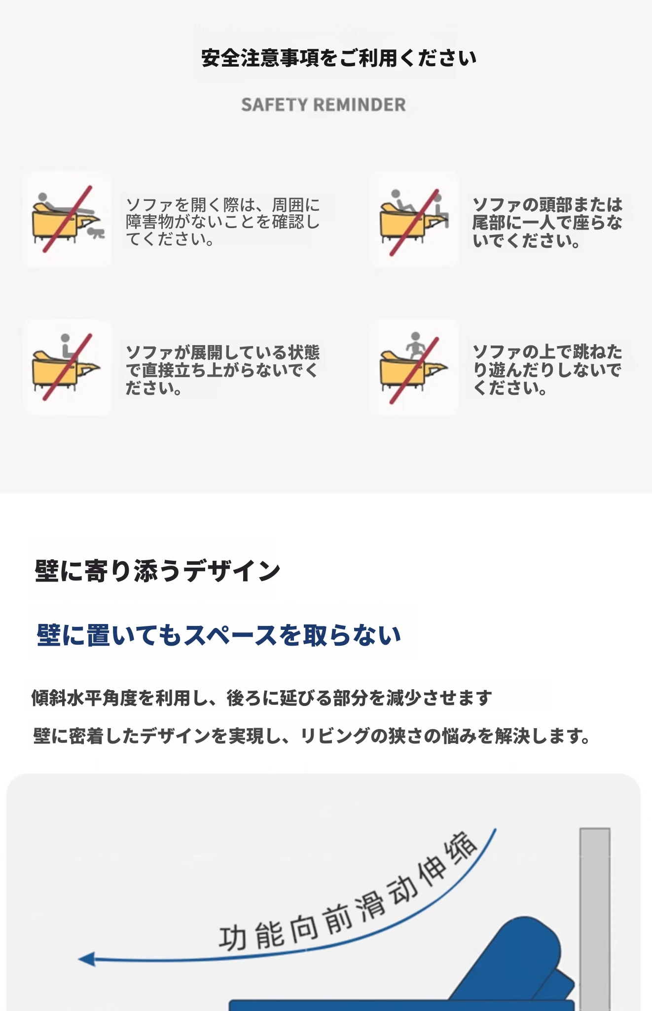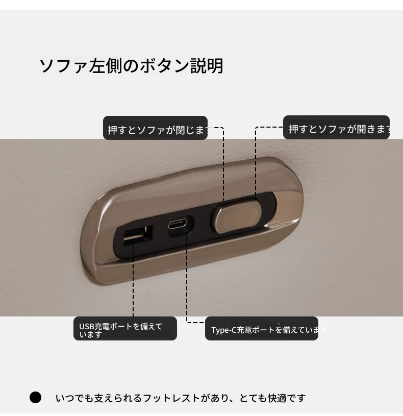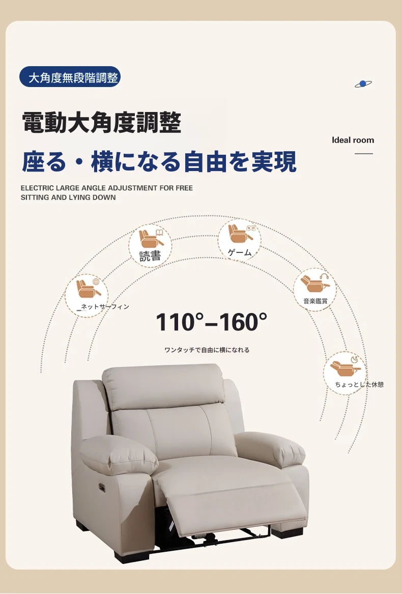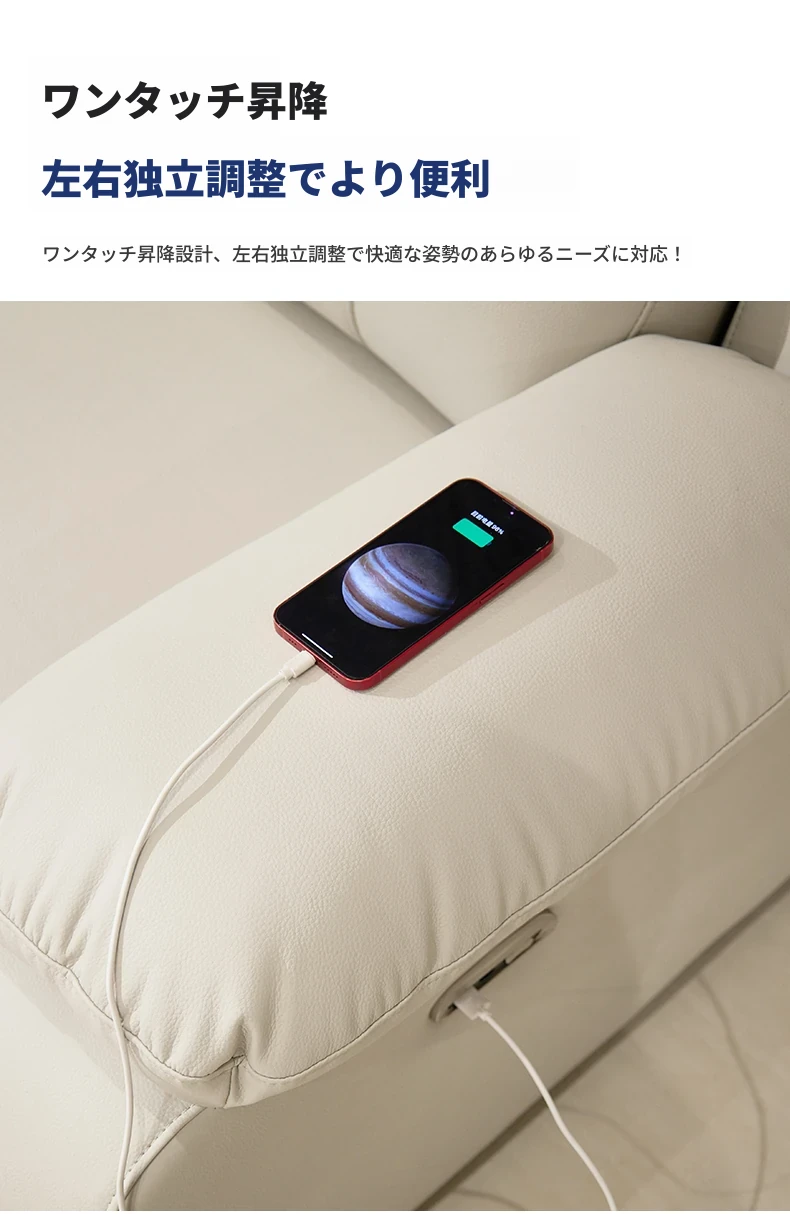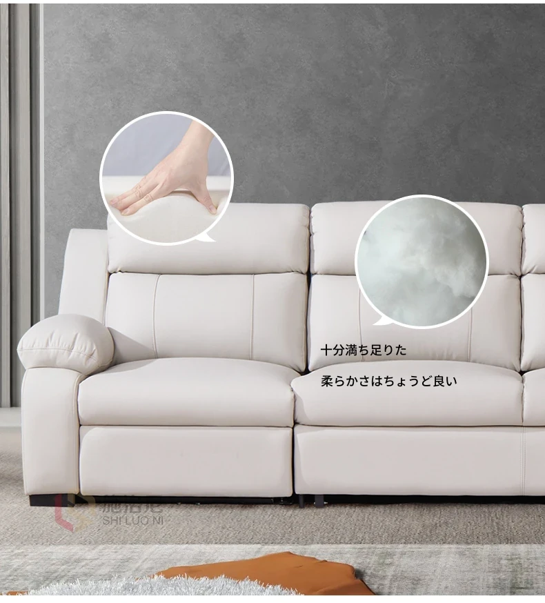 壁にぴったり寄せられる電動機能ソファ!真皮製の3人掛けカウチ、便利な収納スペース付き。リラックスできる宇宙船のようなデザインで、快適な睡眠もサポートするソファベッド。あなたのリビングに最適な選択です!