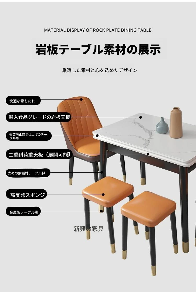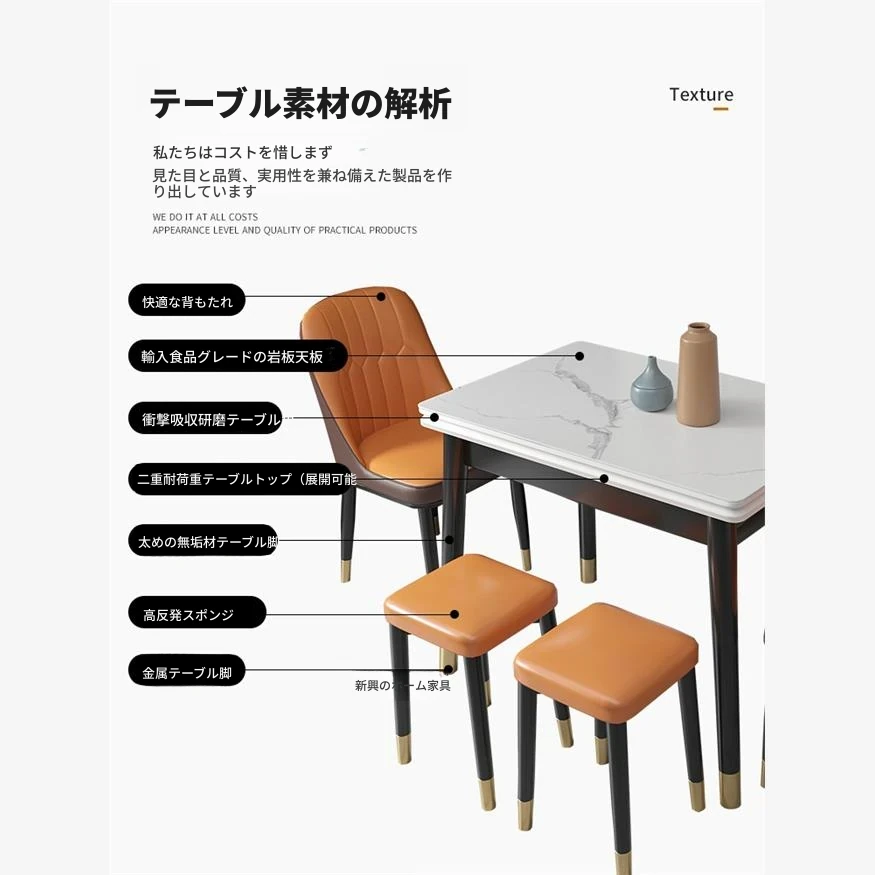 【無銅栓タイプ】クラシックブラック脚の岩板折りたたみテーブル+2脚2スツール(ブラウンオレンジ)