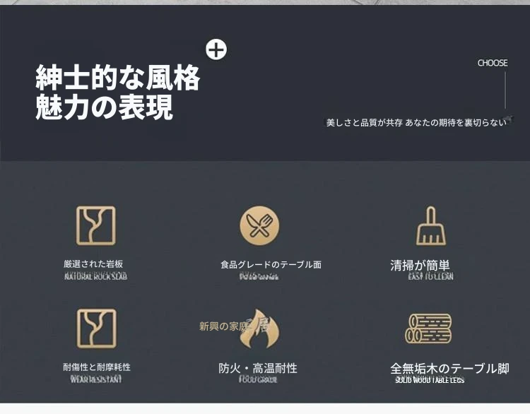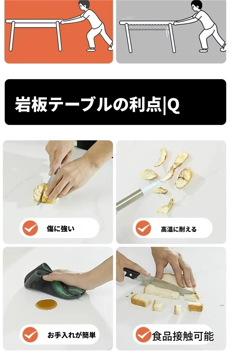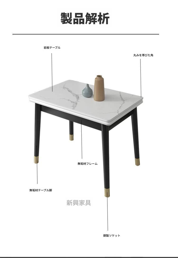 【無銅栓タイプ】クラシックブラック脚の岩板折りたたみテーブル