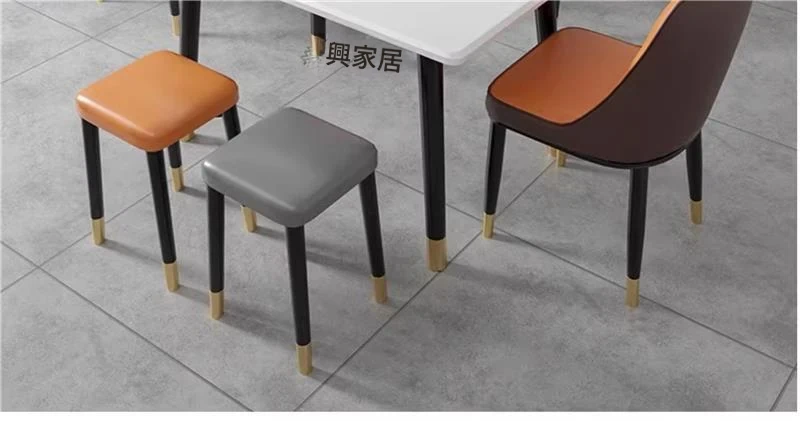 【銅栓タイプ】クラシックブラック脚の岩板折りたたみテーブル+2脚2スツール(ブラウンオレンジ)