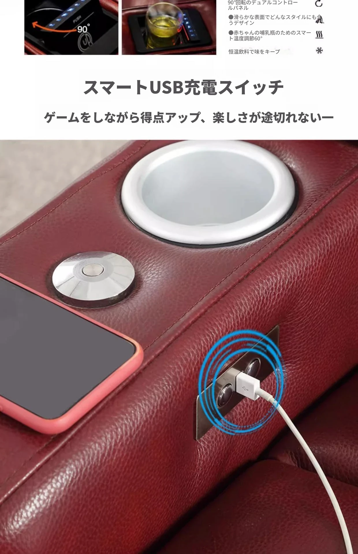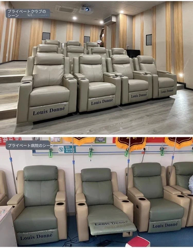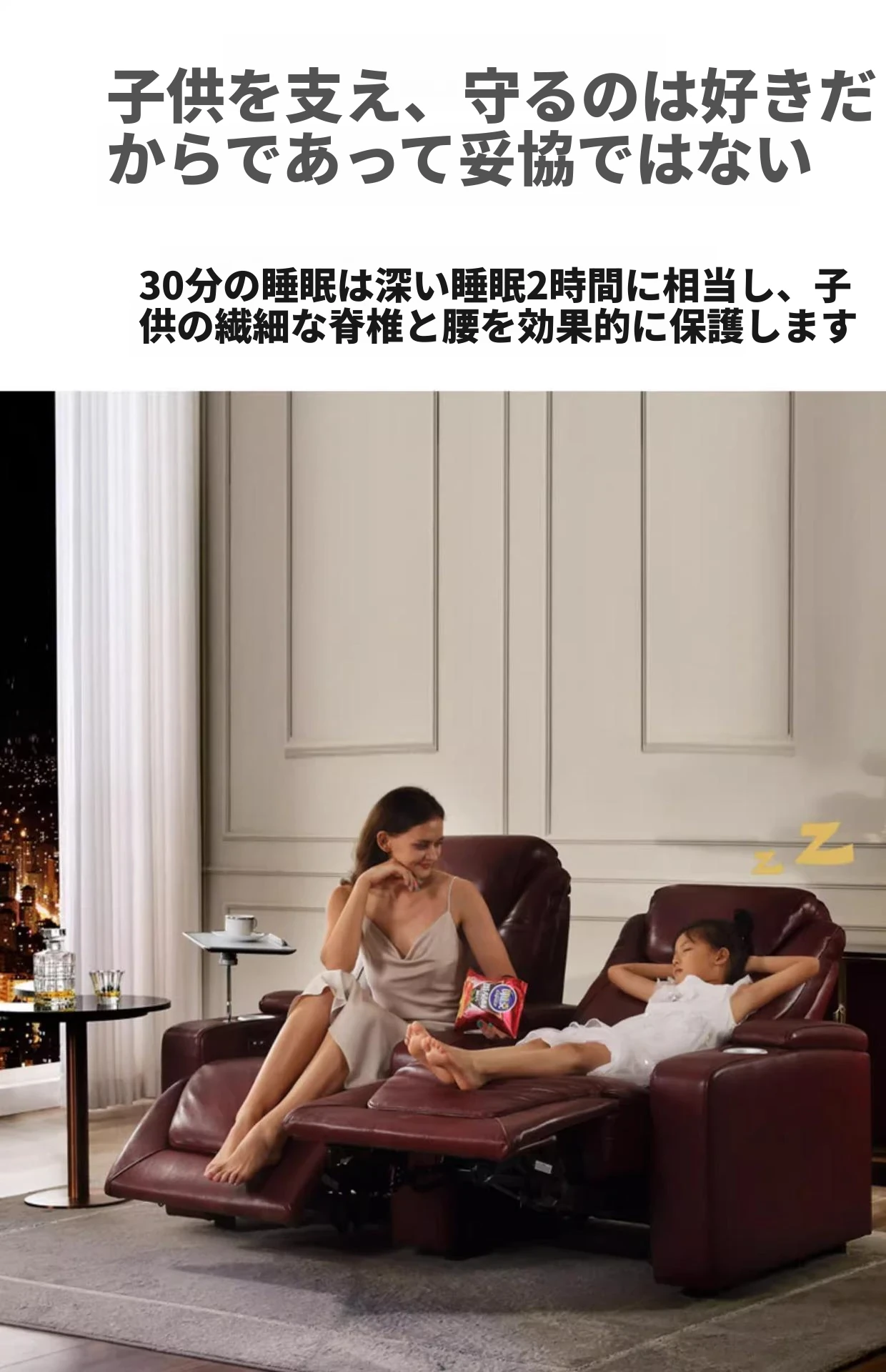 本物の別荘用リビングルームシアター、最高級の本革ソファ!一流の牛革使用、快適な電動機能付き。シングル&ダブル対応、贅沢な空間を演出します。