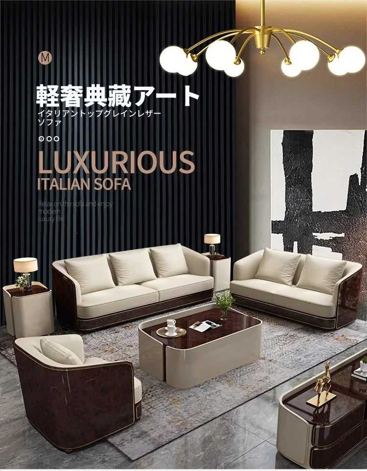イタリアンラグジュアリーBL豪華マンション家具|欧風大邸宅向けイタリアンデザイナー製本革バンプトンレザーソファー|上質なデザインで心地よい空間を演出!