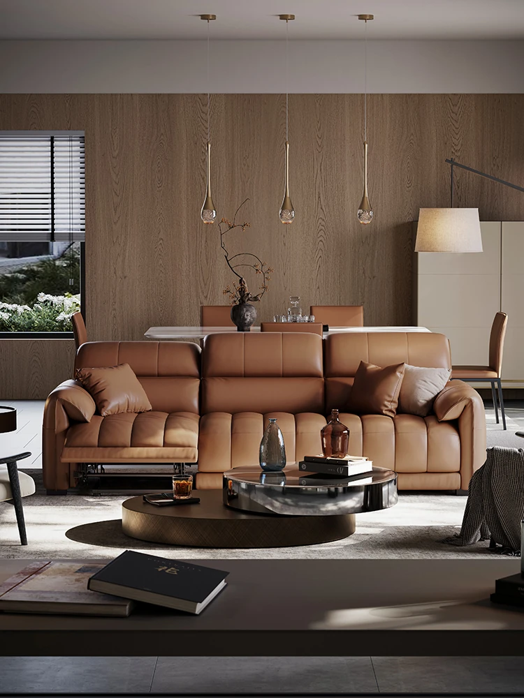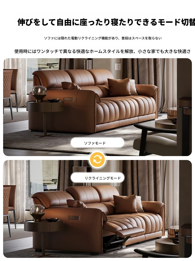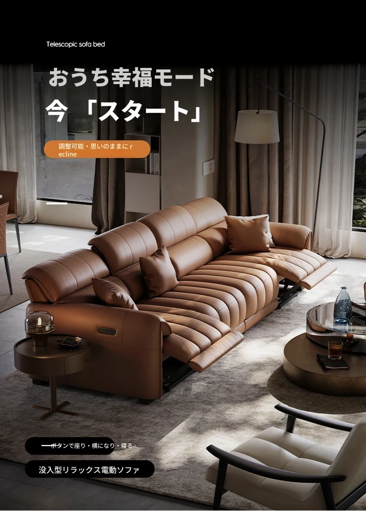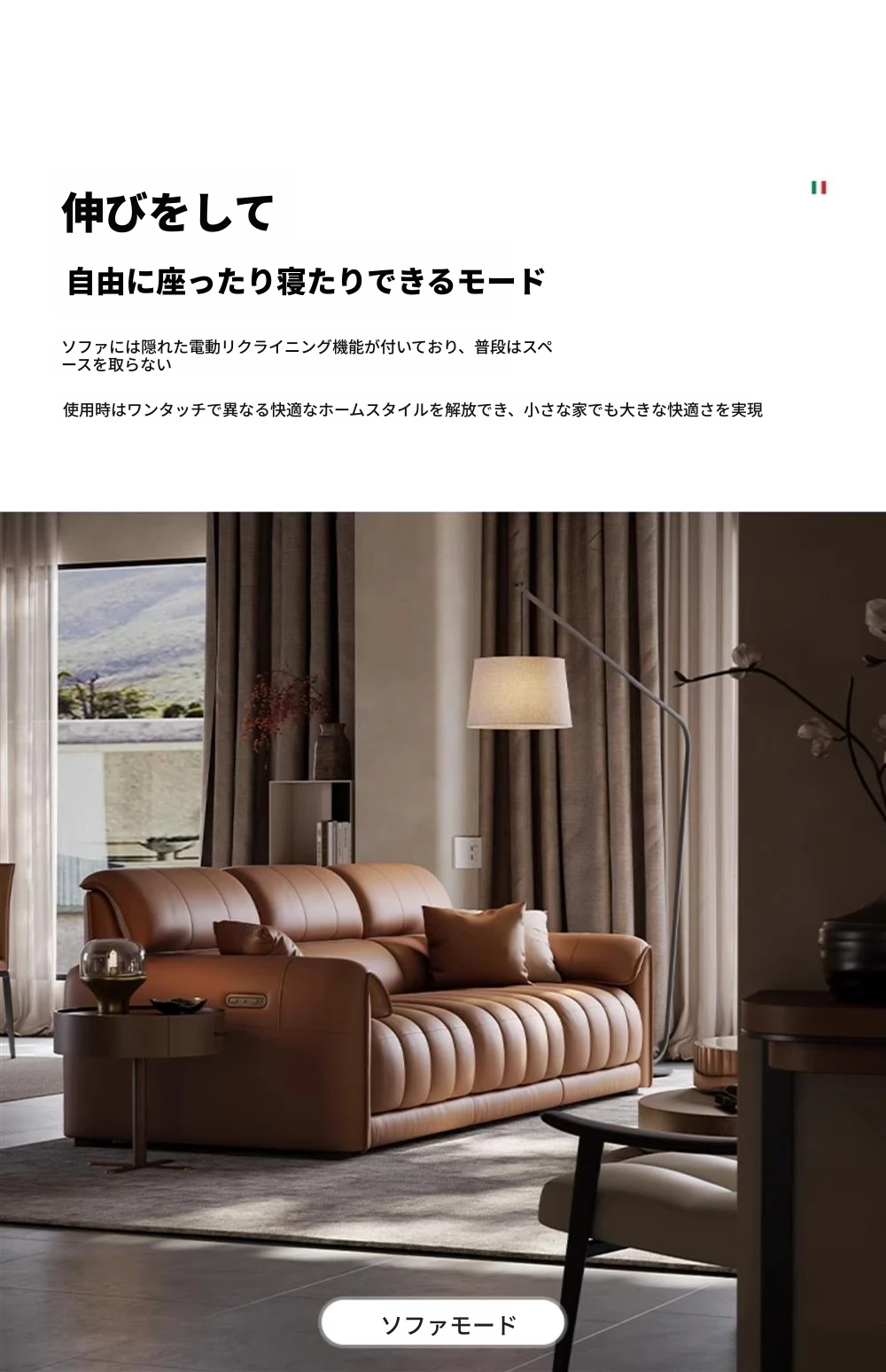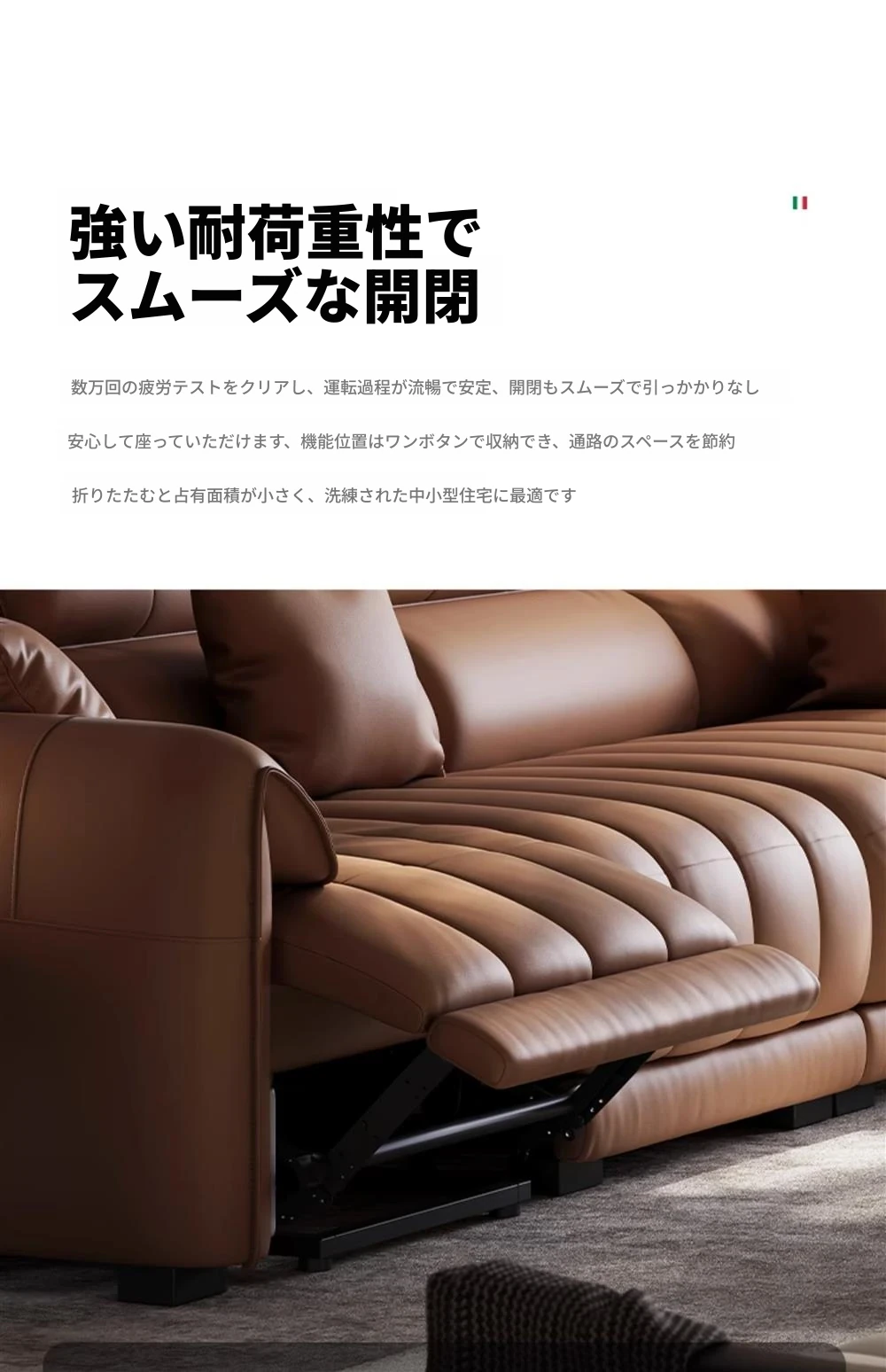 イタリアンミニマルデザインのスチールピアノキー電動多機能ソファー!狭いお部屋にもぴったり、伸縮自在で使い勝手抜群の本革ソファ。リビングをおしゃれに彩り、快適なひとときを提供します!