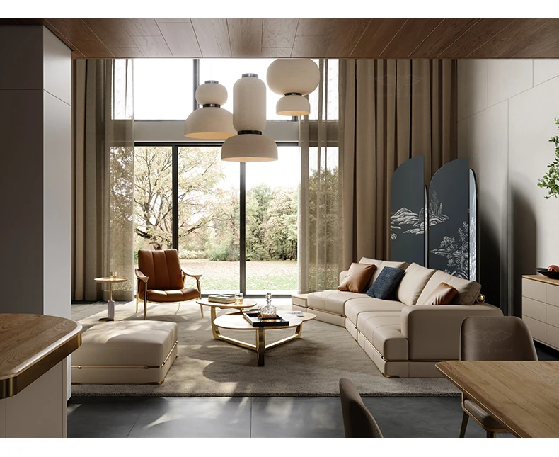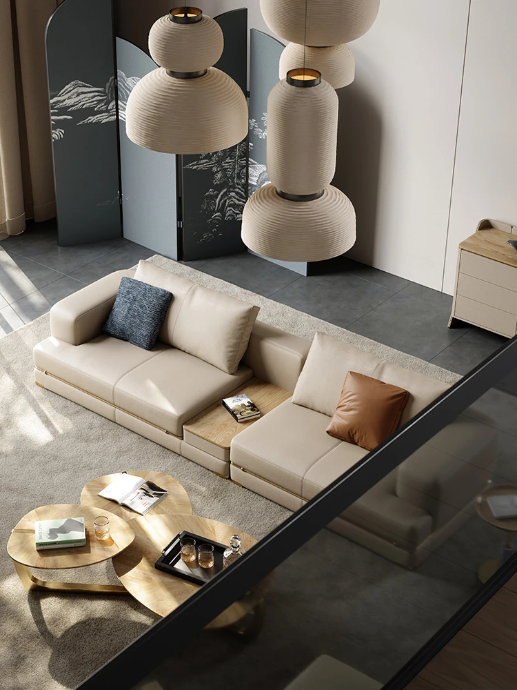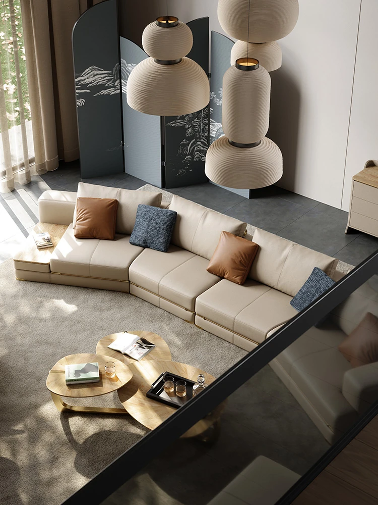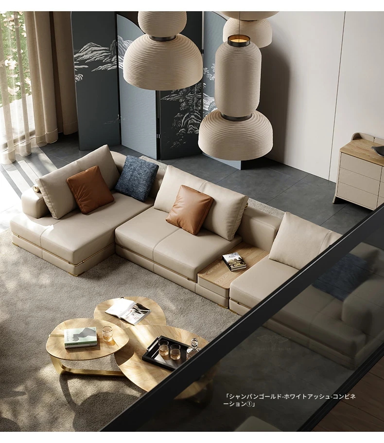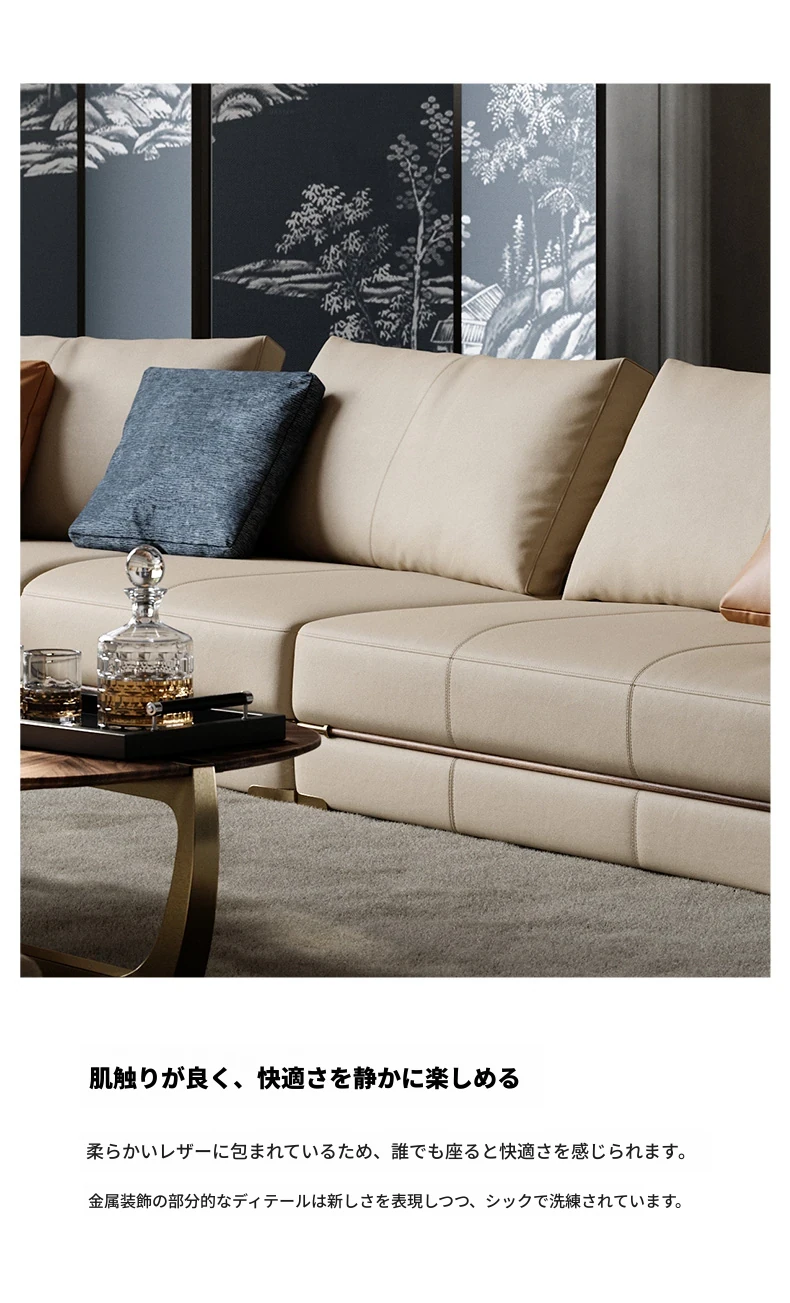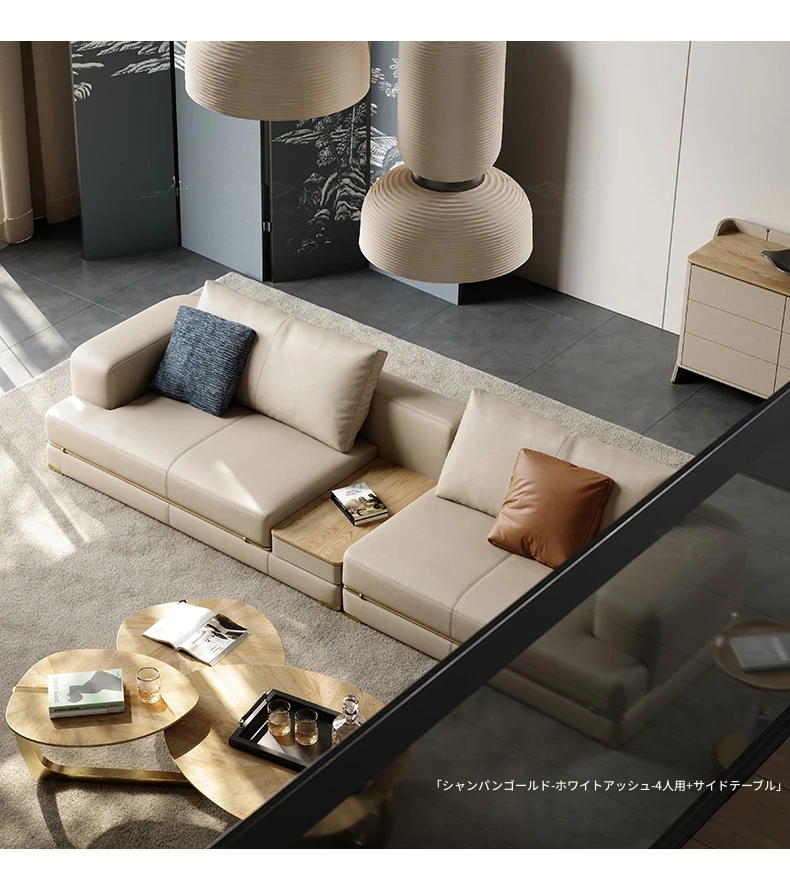 イタリアンミニマリストソファ 大型豪邸リビングにぴったりな直置きソファセット 高級感漂う本革ソファで、洗練された空間を演出!