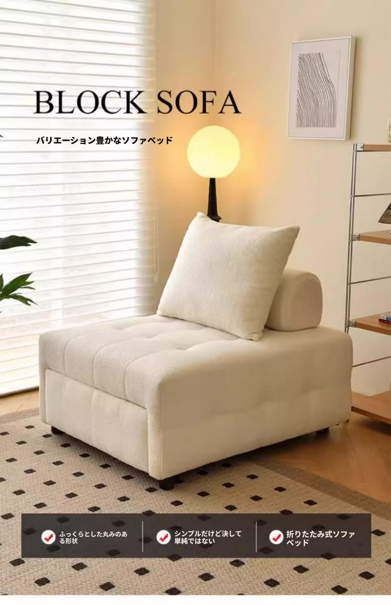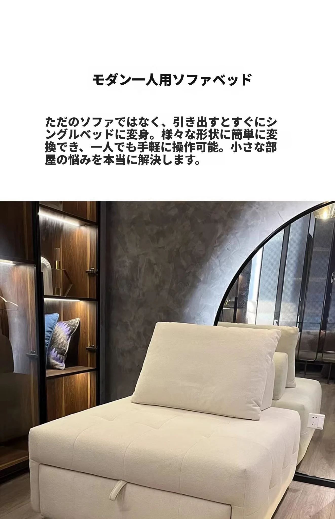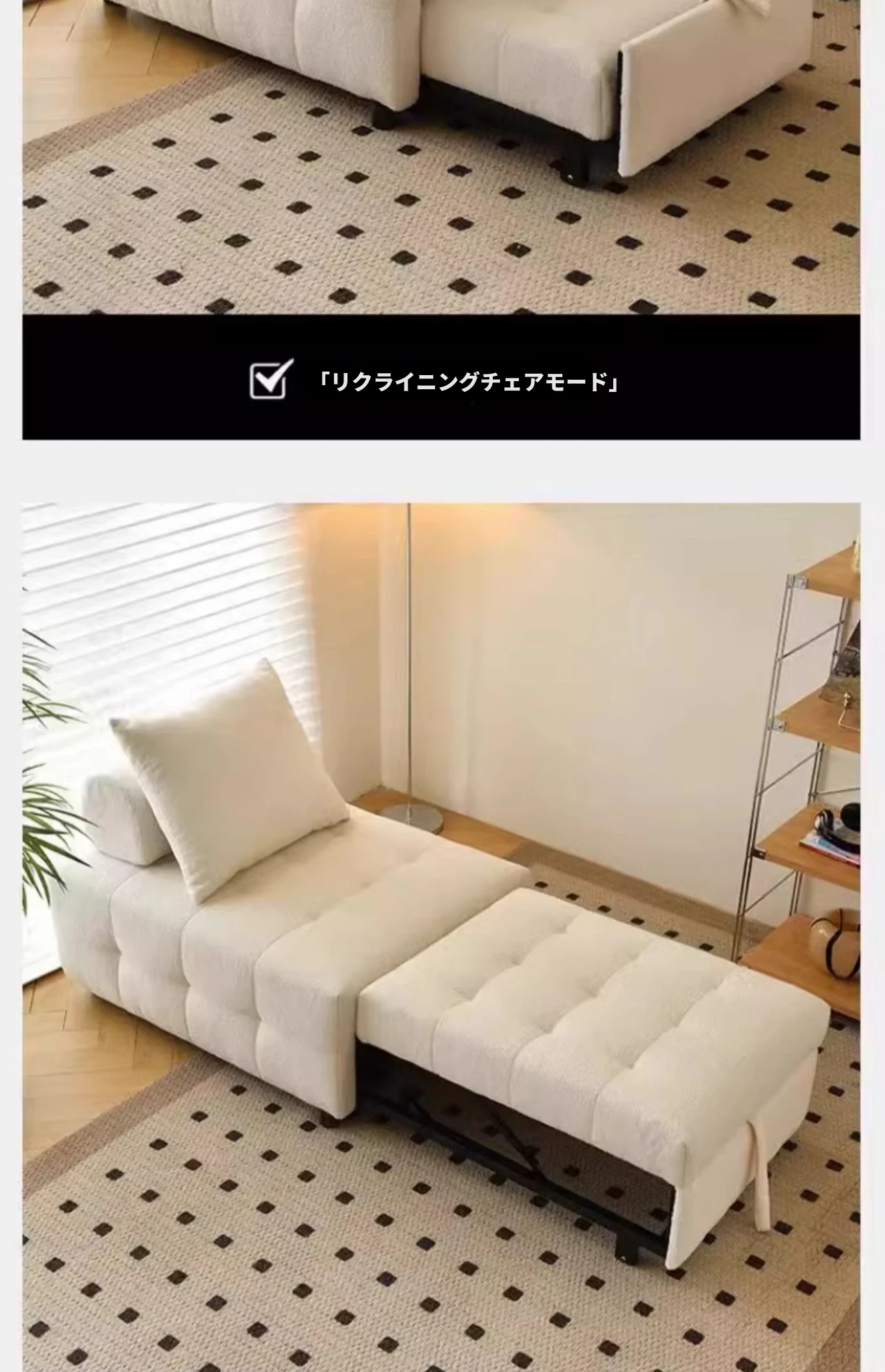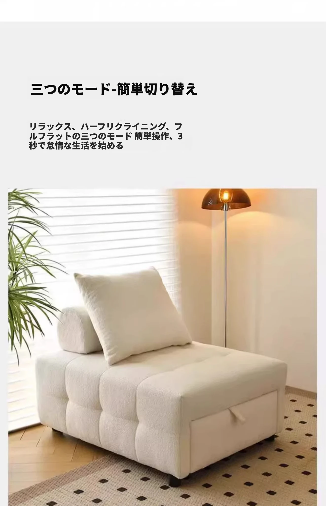 クリーム風の和風パフソファベッド!小型リビングにぴったりの多機能伸縮式シングルソファ&リクライニングチェア。おしゃれで快適な空間を演出し、リラックスできるひとときを提供します。