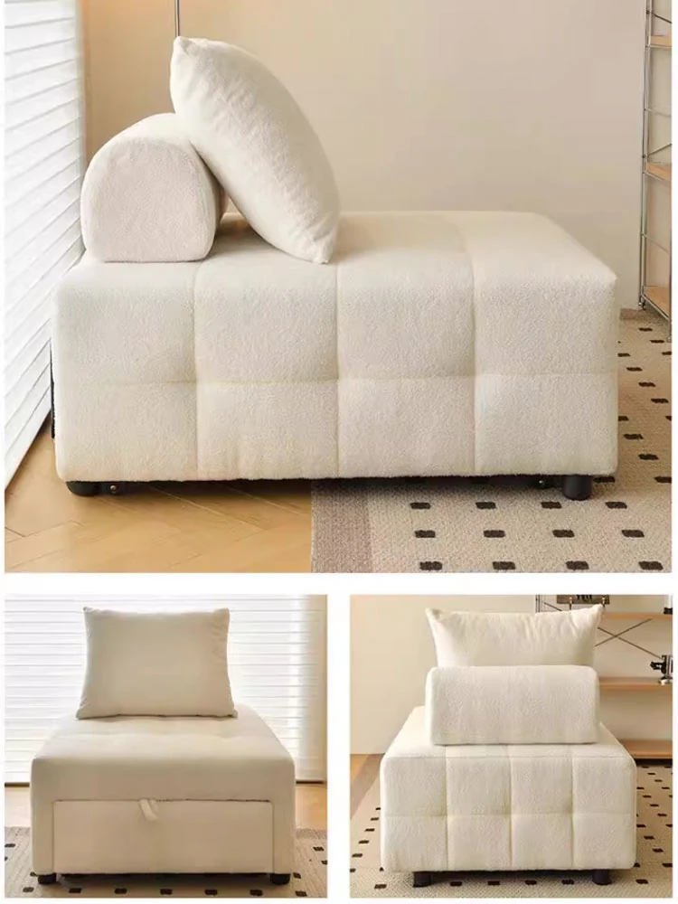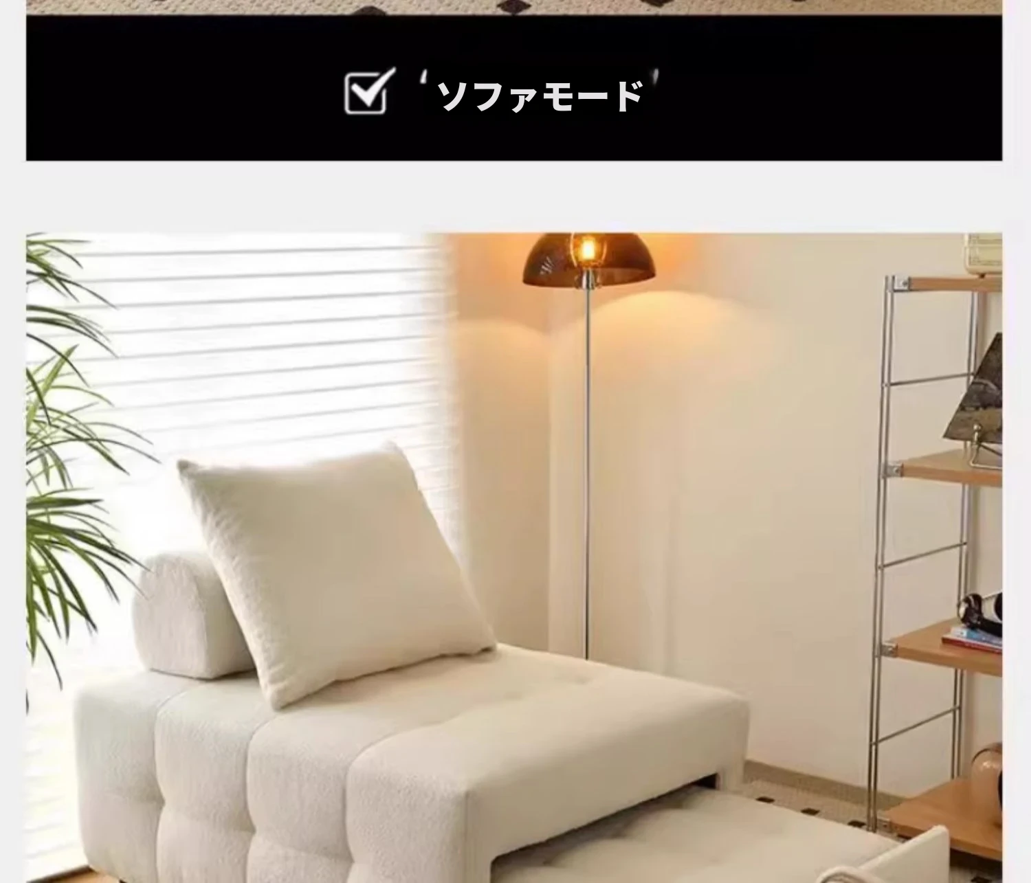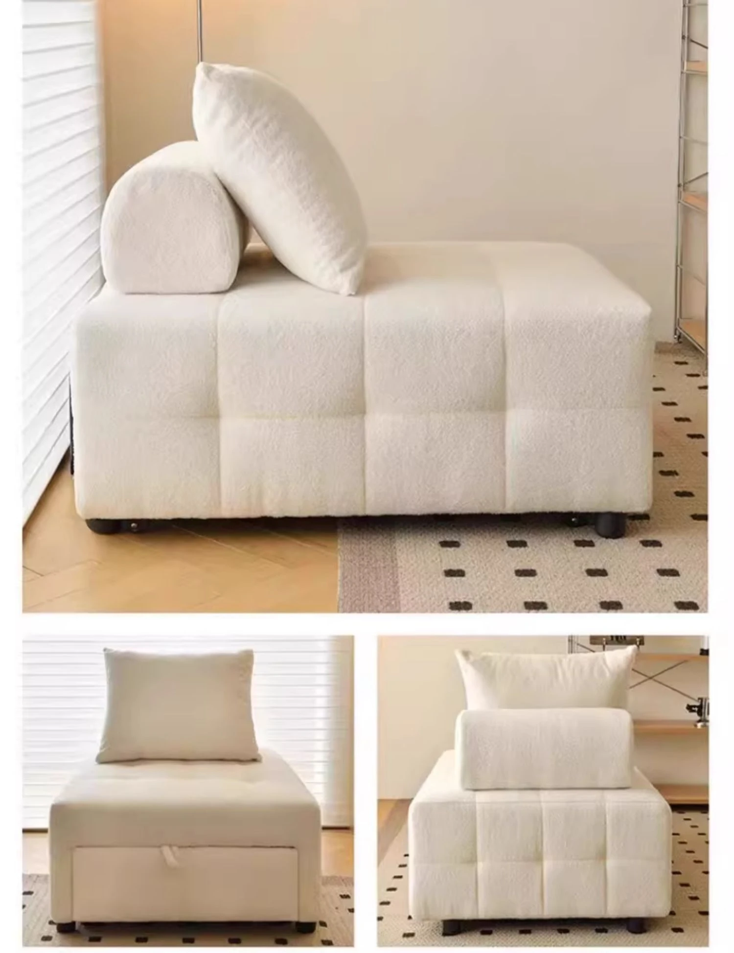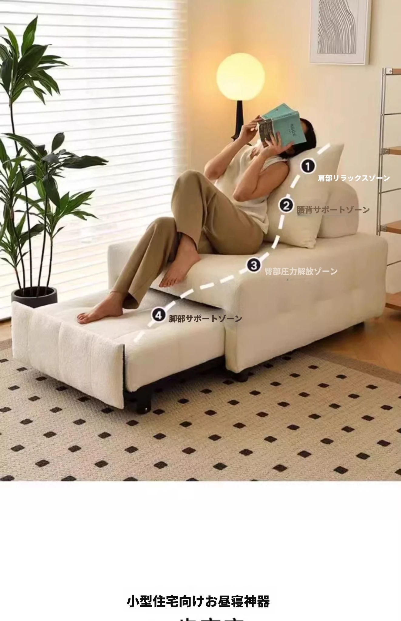 クリーム風の和風パフソファベッド!小型リビングにぴったりの多機能伸縮式シングルソファ&リクライニングチェア。おしゃれで快適な空間を演出し、リラックスできるひとときを提供します。